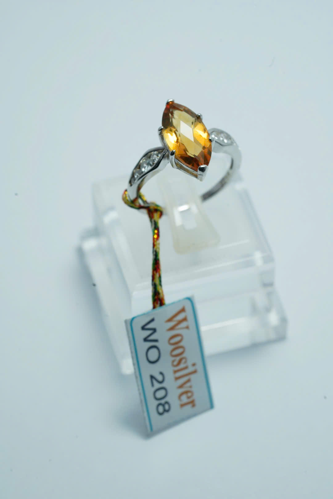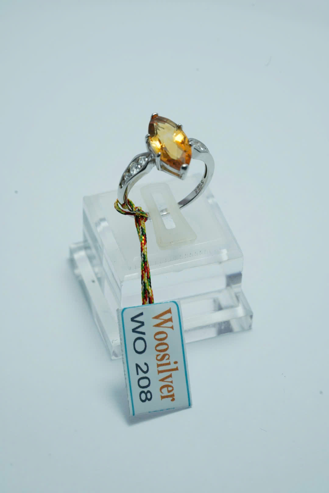 Chiếc nhẫn bạc 925 này là sự kết hợp hoàn hảo giữa thiết kế hiện đại và vẻ đẹp tự nhiên của đá Citrine. Viên đá Citrine được cắt theo kiểu Marquise tinh thần, với sắc vàng ấm áp tỏa sáng rực rỡ, làm nổi bật sắc nét quý phái và sang trọng.
