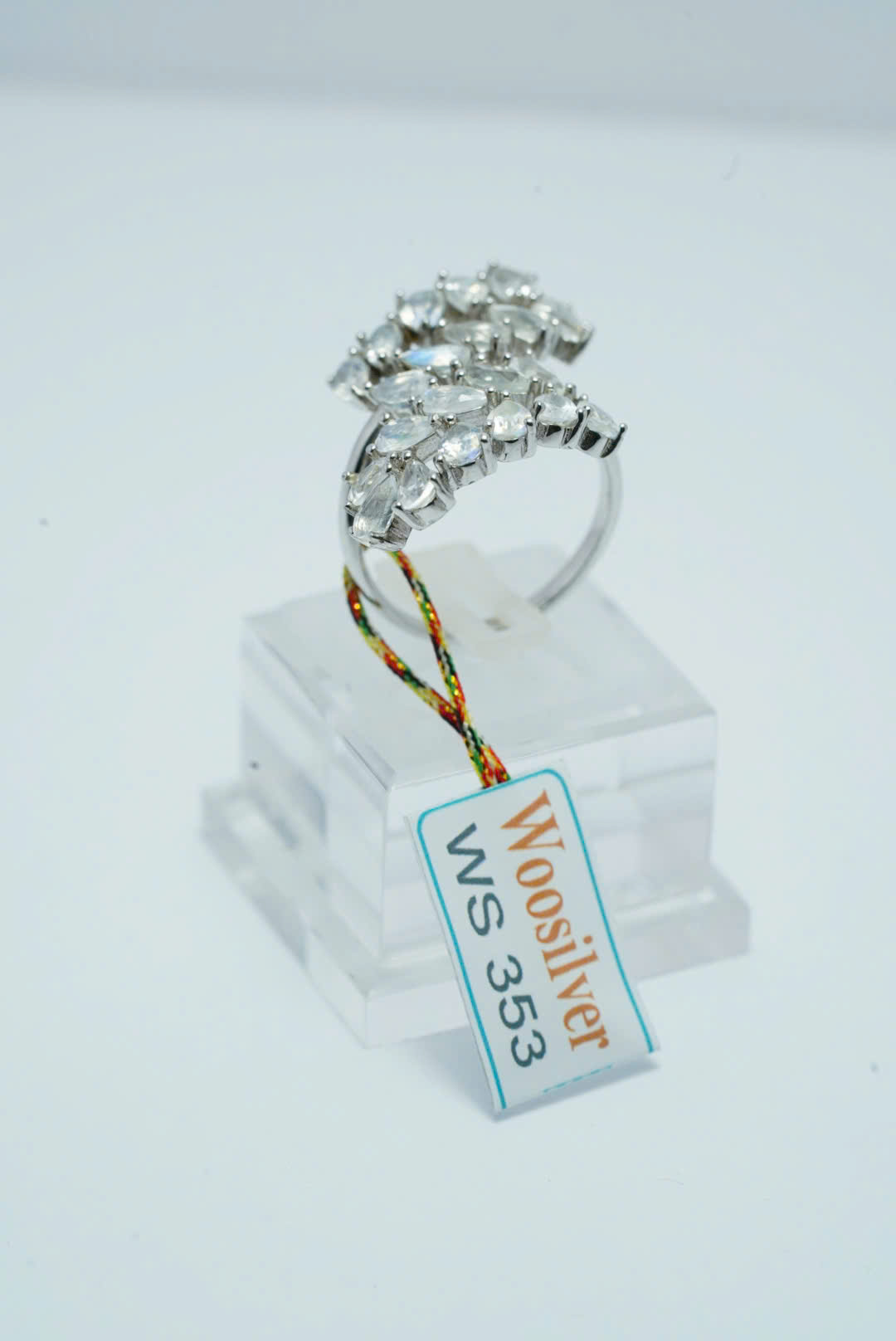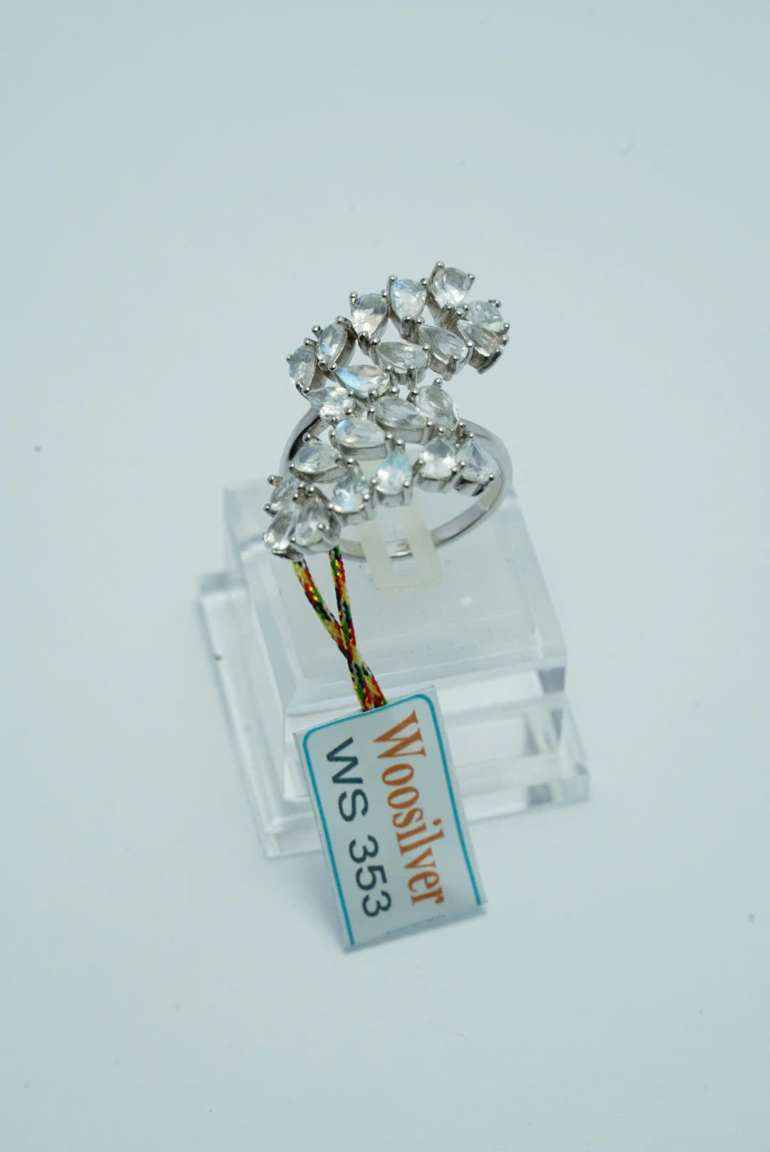 Chiếc nhẫn bạc này nổi bật với thiết kế 3D độc bội gồm nhiều bông hoa nhỏ, mỗi bông được tạo nên từ những viên đá moonstone hình nước. Các thành viên moonstone trong suốt với ánh sáng dịu dàng, tỏa ra sự quyến rũ và trốn tránh mọi góc nhìn. Thiết kế này tạo cảm giác như những bông hoa nở rộng trên ngón tay, mang lại sự nữ tính, thanh lịch và sang trọng. Đá mặt trăng là biểu tượng của sự cân bằng cảm xúc và sáng tạo, thường được coi là đá của tình yêu và may mắn chiếc nhẫn này không chỉ là món trang sức sức hoàn hảo cho những dịp đặc biệt mà còn có thể hiện gu thẩm mỹ tinh tế của người đeo.