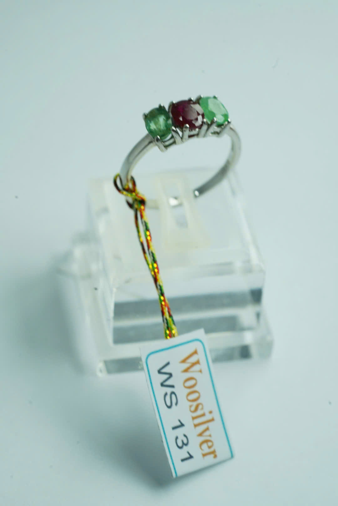 Chiếc nhẫn nổi bật với ba viên đá quý rực rỡ, trong đó có hai viên ngọc lục bảo xanh tươi ở hai bên và một viên ruby đỏ huyền thoại ở trung tâm. Được chế tác trên nền bạc 925 sáng bóng, chiếc nhẫn mang lại vẻ đẹp sang trọng và đẳng cấp. Ruby, viên đá của tình yêu và sự đam mê, hòa quyện hoàn hảo với ngọc lục bảo – biểu tượng của sự tái sinh và may mắn tạo nên một phụ kiện tuyệt vời cho các sự kiện trang trọng hoặc làm quà tặng ý nghĩa cho người thân.