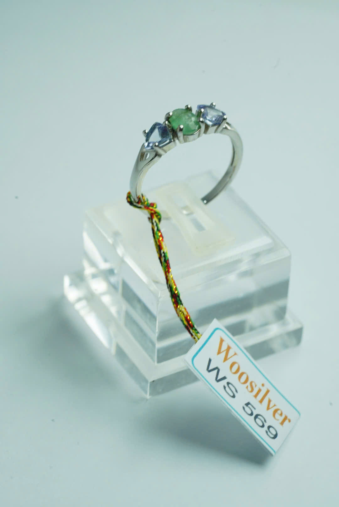 Chiếc nhẫn bạc này mang đến một thiết kế tinh tế với sự kết hợp giữa đá ngọc lục bảo xanh tự nhiên và hai viên tanzanite tím. Viên đá ngọc lục bảo hình bầu dục ở trung tâm mang sắc xanh tươi mát, biểu tượng cho sự tái sinh và thịnh vượng. Hai bên là hai viên đá tanzanite cắt hình tam giác màu tím, biểu tượng cho sự sáng tạo và tinh thần đổi mới, tạo ra sự tương phản màu sắc độc độc và cuốn hút chiếc nhẫn này không chỉ tôn lên vẻ đẹp sang trọng mà còn mang lại cảm giác giác thanh lịch và quý phái cho người đeo. Đây là lựa chọn lý tưởng cho những dịp đặc biệt hoặc làm quà tặng đầy ý nghĩa