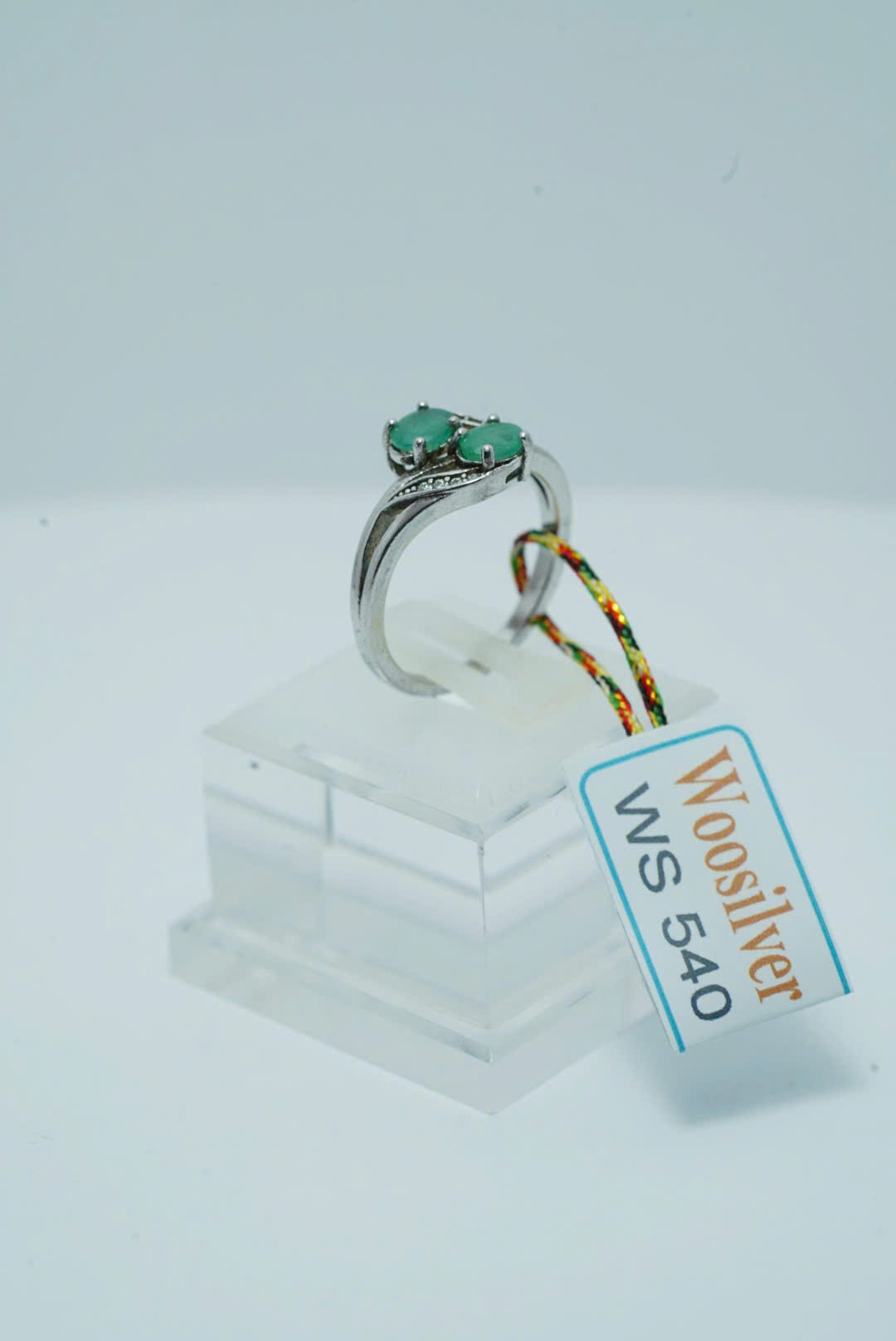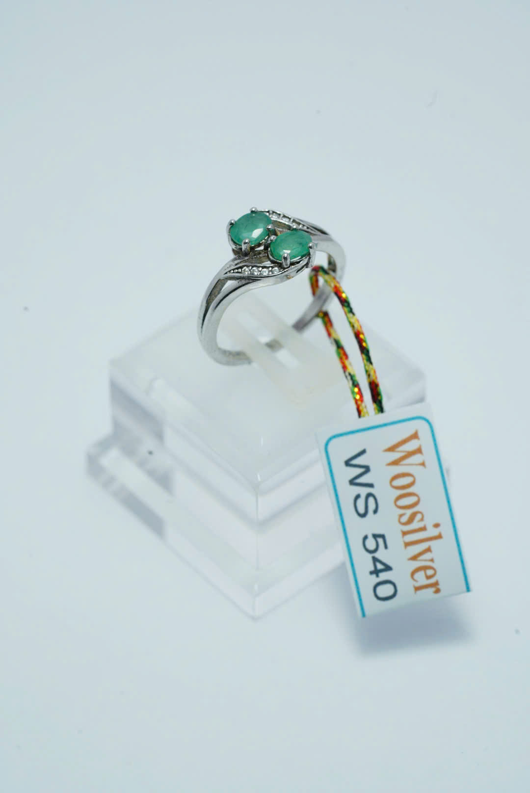 Chiếc nhẫn bạc này có thiết kế tinh tế với hai viên đá ngọc lục bảo xanh tự nhiên, xếp chồng lên nhau, tạo điểm nhấn nổi bật ở trung tâm. Hai viên đá ngọc lục bảo có màu xanh tươi sáng, biểu tượng cho sự tái sinh và thịnh vượng, được giữ chặt bởi các chiến thắng chắc chắn. Bên cạnh đó, những viên đá nhỏ trốn tránh được sắp xếp tỉ mỉ trên thân võ, thêm phần sang trọng và quý phái. Thiết kế này không chỉ mang lại vẻ đẹp tinh tế mà còn tạo cảm giác giác thanh thoát và nhẹ nhàng cho người đeo. chiếc nhẫn này là lựa chọn hoàn hảo cho những ai yêu thích phong cách trang nhã và thanh lịch, phù hợp cho những dịp đặc biệt hoặc tặng quà tặng độc.