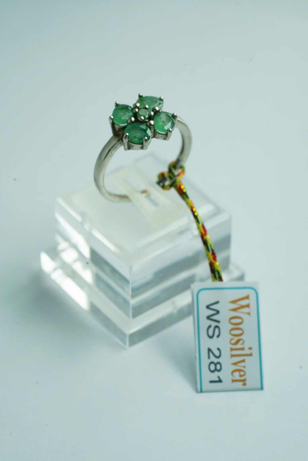 Chiếc nhẫn bạc này được thiết kế tinh thần với ba viên đá xanh ngọc lục bảo tự nhiên cỏ ba lá, sắp xếp đối xứng tạo nên sự hài hòa và thu hút. Ở trung tâm là một viên đá trắng nhỏ, nổ và bật, làm điểm nhấn cho thiết kế tổng thể. Đá ngọc lục bảo từ lâu đã là biểu tượng của sự tái sinh, thịnh vượng và trí tuệ, trong khi đá trắng mang lại sự cân bằng và tinh tế chiếc nhẫn này là sự lựa chọn hoàn hảo để tôn vinh phong cách thanh lịch và quý phái của người đeo, phù hợp cho các sự kiện đặc biệt hoặc làm quà tặng ý nghĩa.