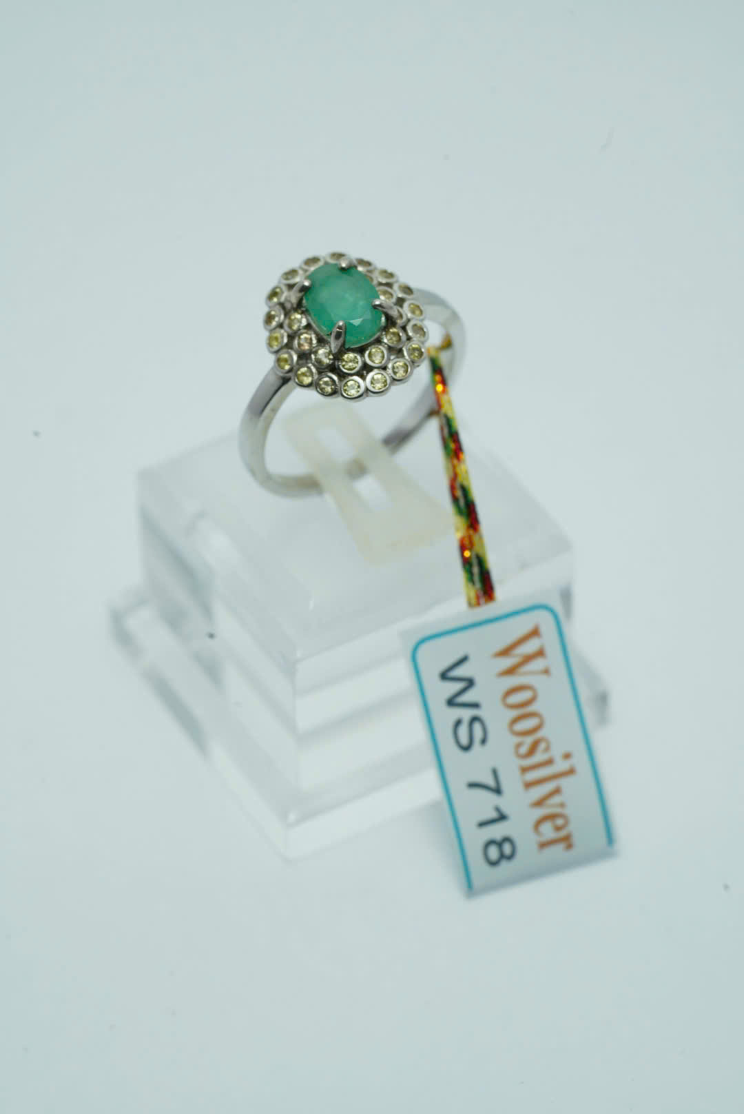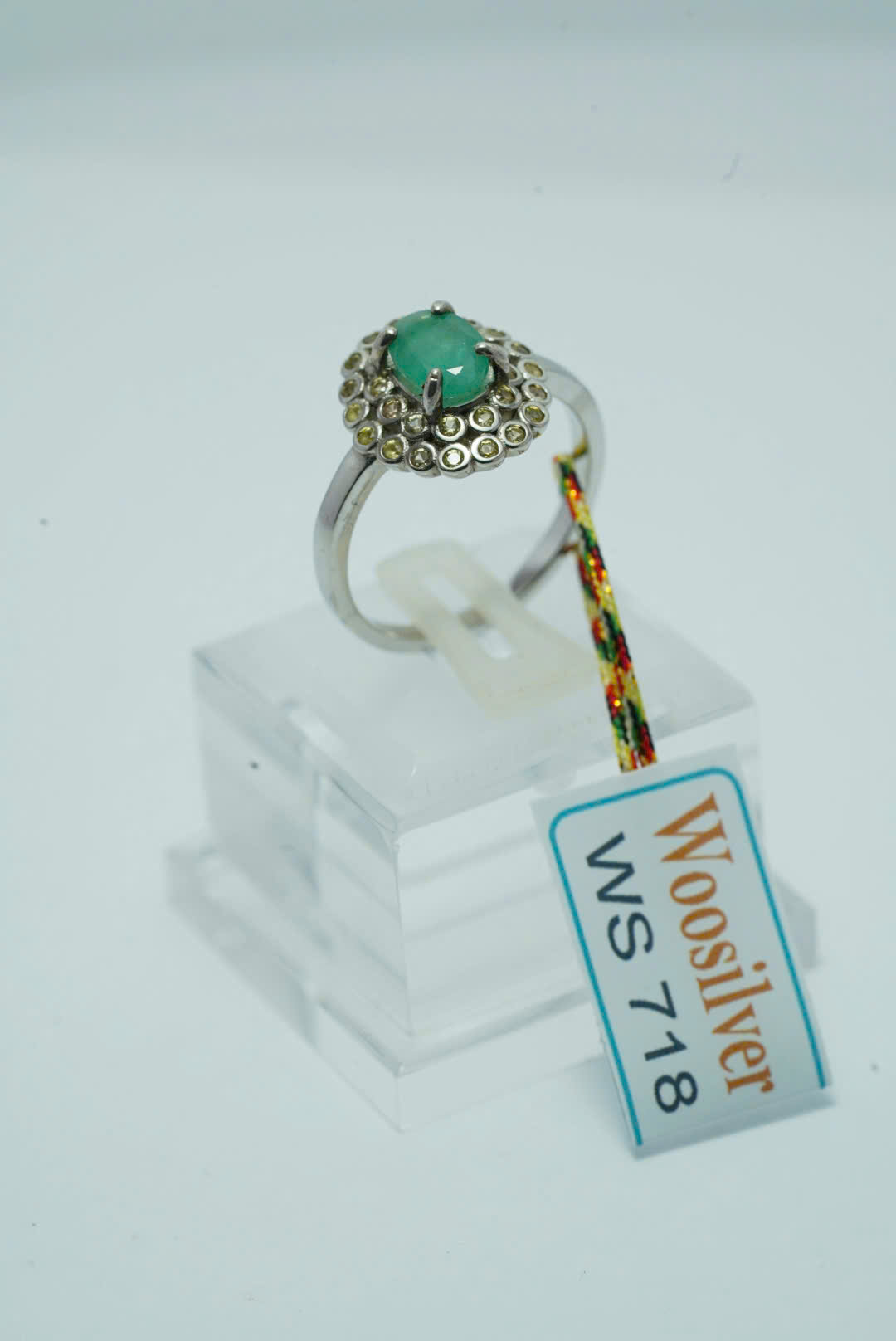 Chiếc nhẫn bạc này được thiết kế độc đáo với viên đá ngọc lục bảo xanh tự nhiên hình bầu dục nổi bật ở trung tâm. Xung quanh viên đá chính là một vòng sapphire nhỏ, được sắp xếp tỉ mỉ nên hiệu ứng ứng lợi và thu hút mọi ánh nhìn. Màu xanh tươi mát của biểu tượng ngọc lục bảo cho sự tái sinh và thịnh vượng, trong khi những viên sapphire nhỏ mang đến vẻ quý phái và sang trọng. Sự kết hợp giữa hai loại đá quý này không chỉ tạo nên sự cân đối hoàn hảo mà còn tôn lên vẻ đẹp quý giá của chiếc nhẫn chiếc nhẫn này là sự lựa chọn tuyệt vời dành cho những ai yêu thích tinh tế và sang trọng trong trang sức. Thích hợp cho những dịp quan trọng hoặc tặng quà đầy ý nghĩa.
