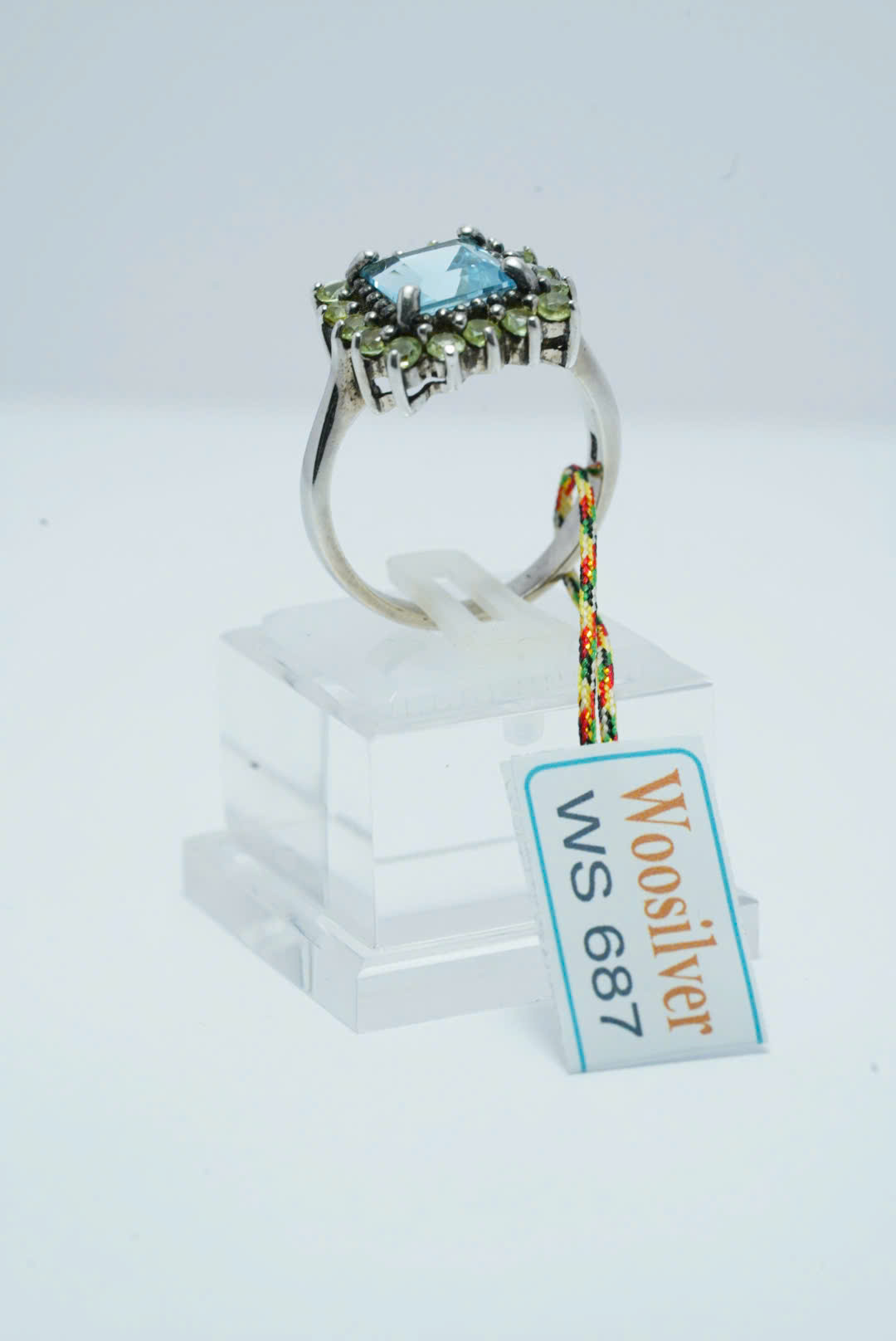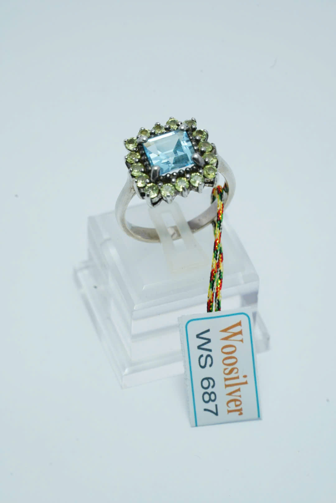 Chiếc nhẫn Swiss Topaz này nổi bật với đá topaz xanh nhạt cắt vuông tại trung tâm, mang đến sự tươi mát và tinh khiết. Viên topaz được bao bọc bởi một vòng đá Peridot nhỏ, có màu xanh lá cây tươi sáng, tạo ra sự tương phản tuyệt đẹp giữa hai màu sắc tự nhiên. Thiết kế vòng mang phong cách cổ điển và sang trọng, lý tưởng cho những ai yêu thích vẻ đẹp thanh lịch nhưng đầy cuốn hút. Topaz xanh được xem là biểu tượng của bình an và trí tuệ, trong khi peridot biểu tượng cho sự sáng tạo và năng lượng tích cực chiếc nhẫn này là lựa chọn hoàn hảo cho những dịp đặc biệt, mang lại sự tự tin và phong tinh tế cho người đeo.