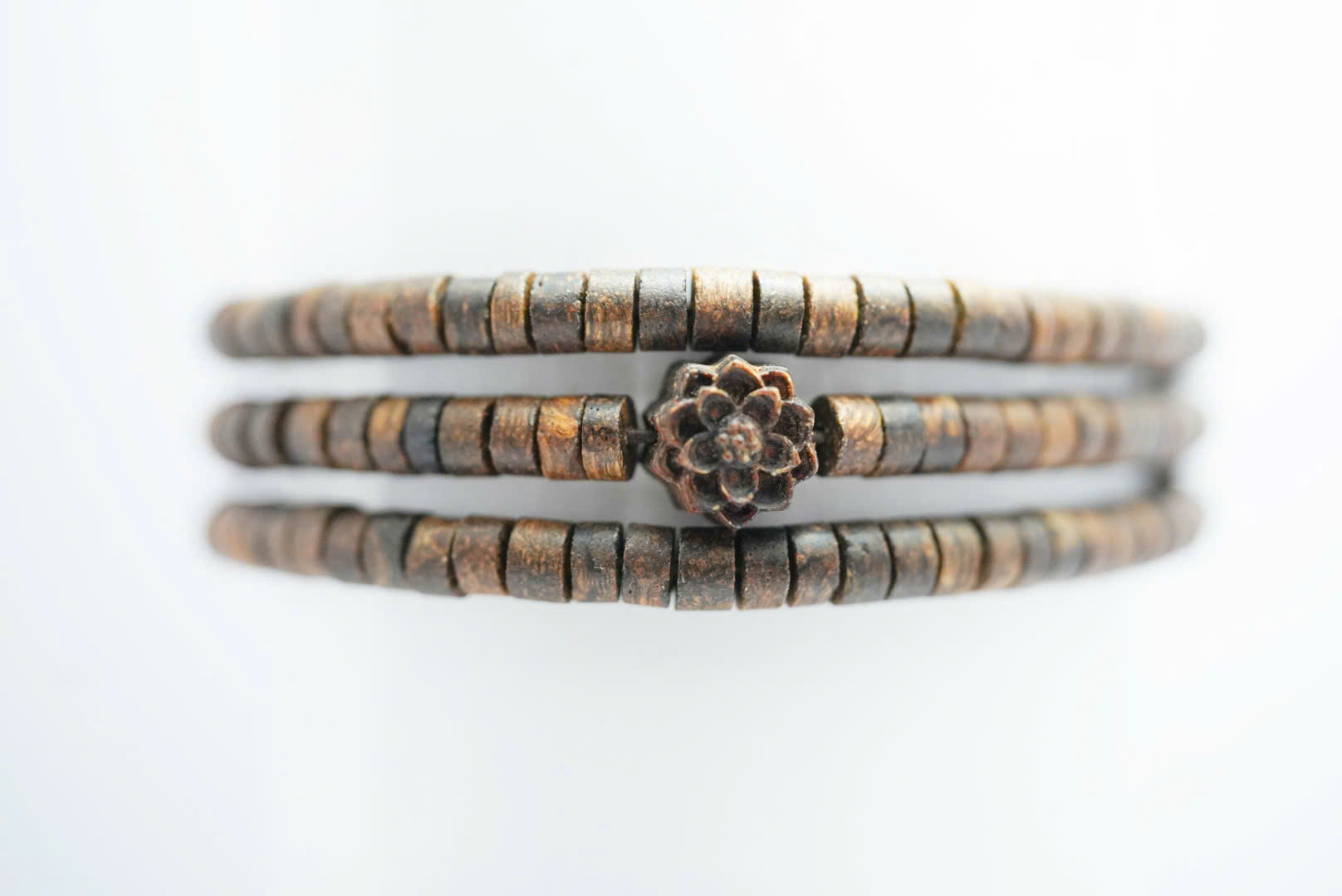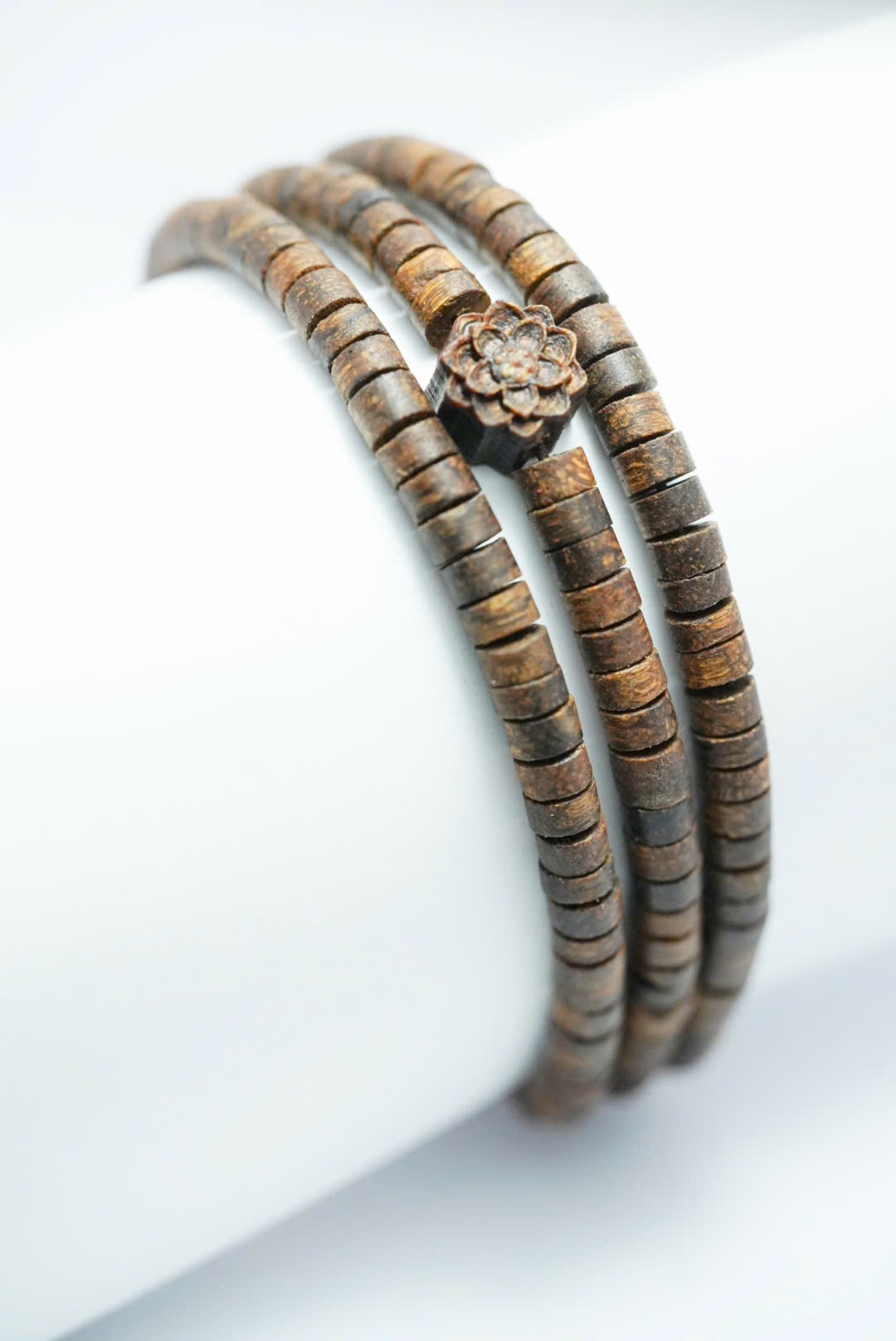 Chuỗi trầm Nut Indonesia được chế tác từ gỗ trầm hương tự nhiên Indonesia, nổi bật với các hạt gỗ dạng đốt nhỏ xâu đều đặn và tỉ mỉ. Hạt gỗ mang sắc nâu đen trầm ấm, vân gỗ rõ nét, toát lên vẻ đẹp tự nhiên và sự độc đáo của trầm hương Indo nổi tiếng.