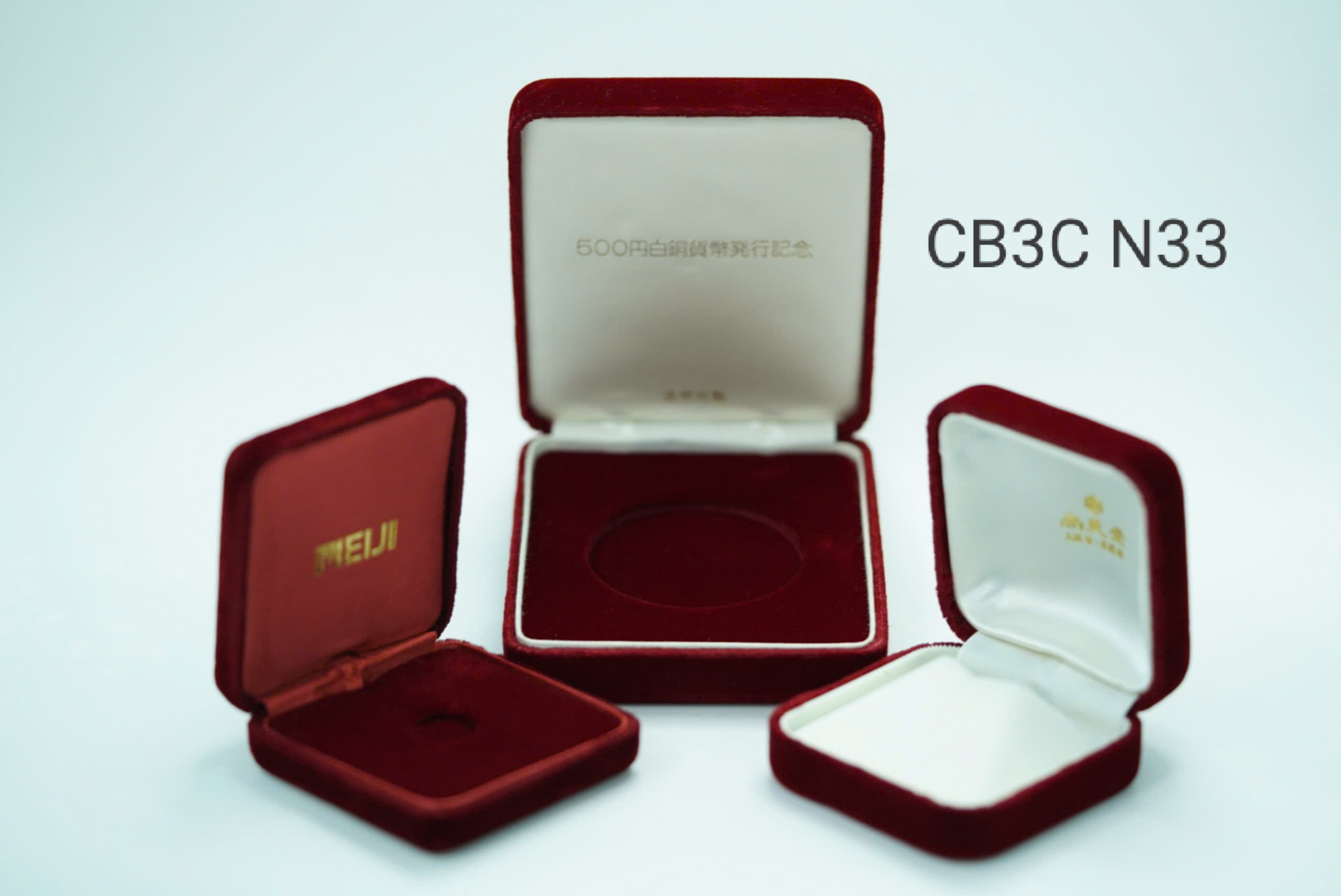 Có hộp thương hiệu như MIKIMOTO, MEIJI, QUEENSLAND và hộp kỷ niệm phát hành tiền xu.