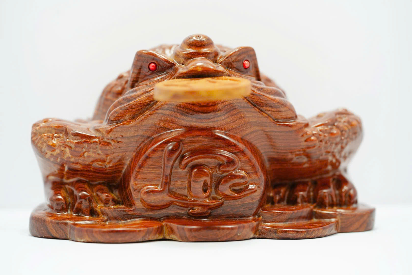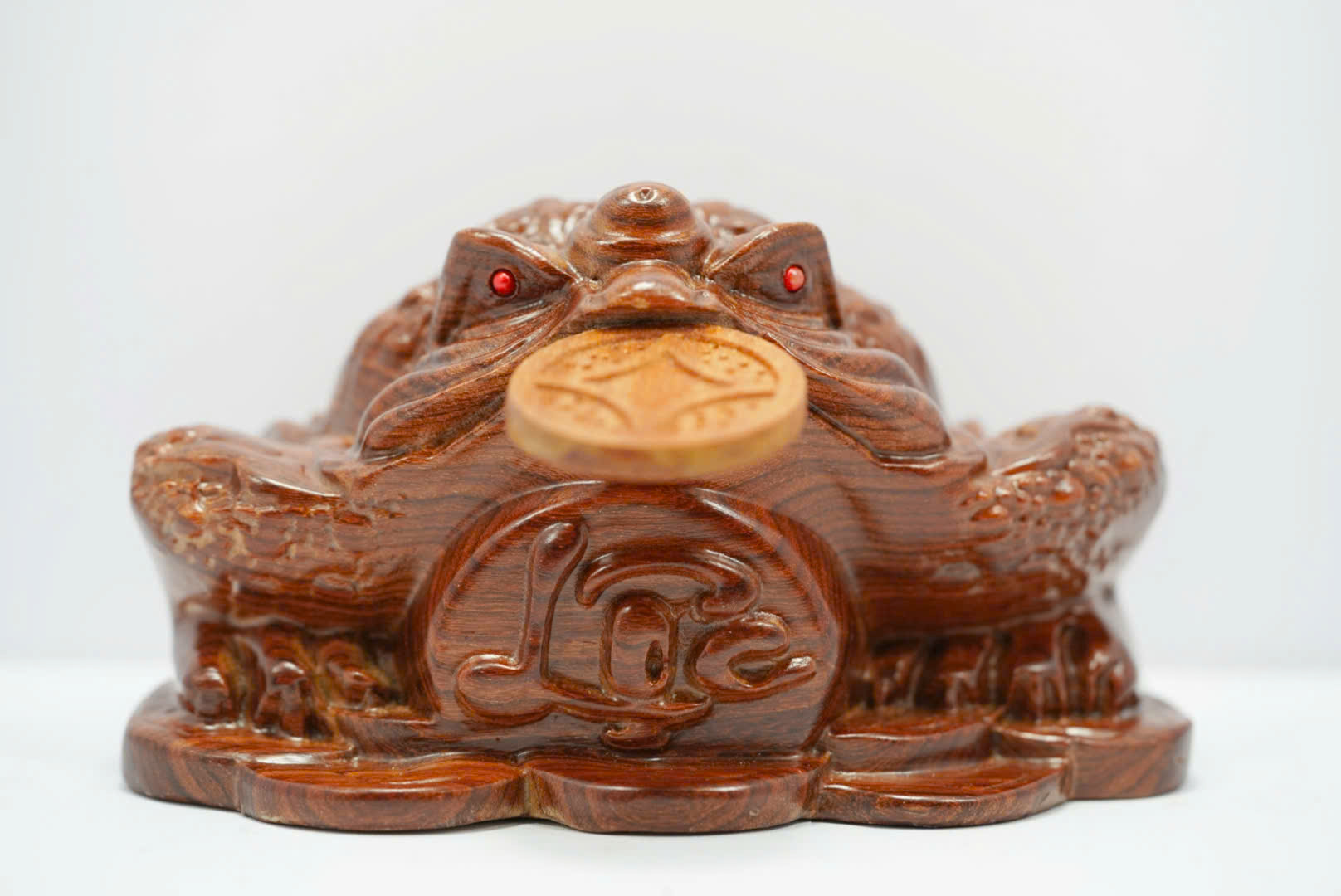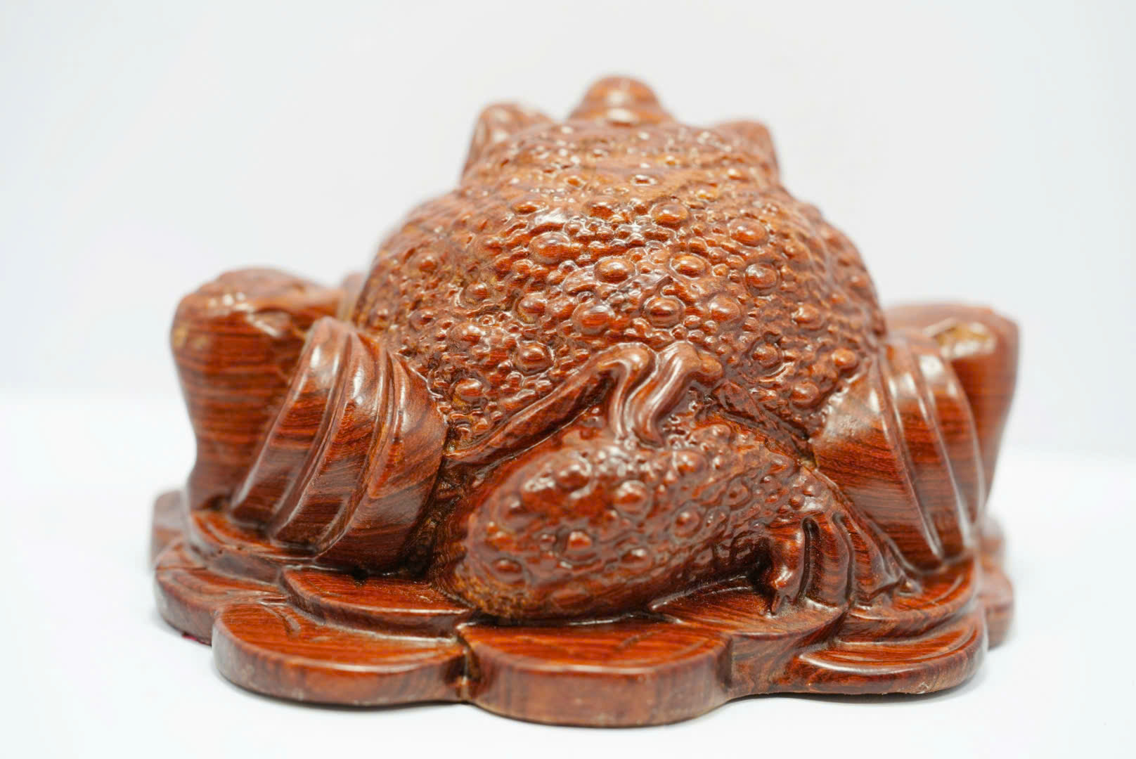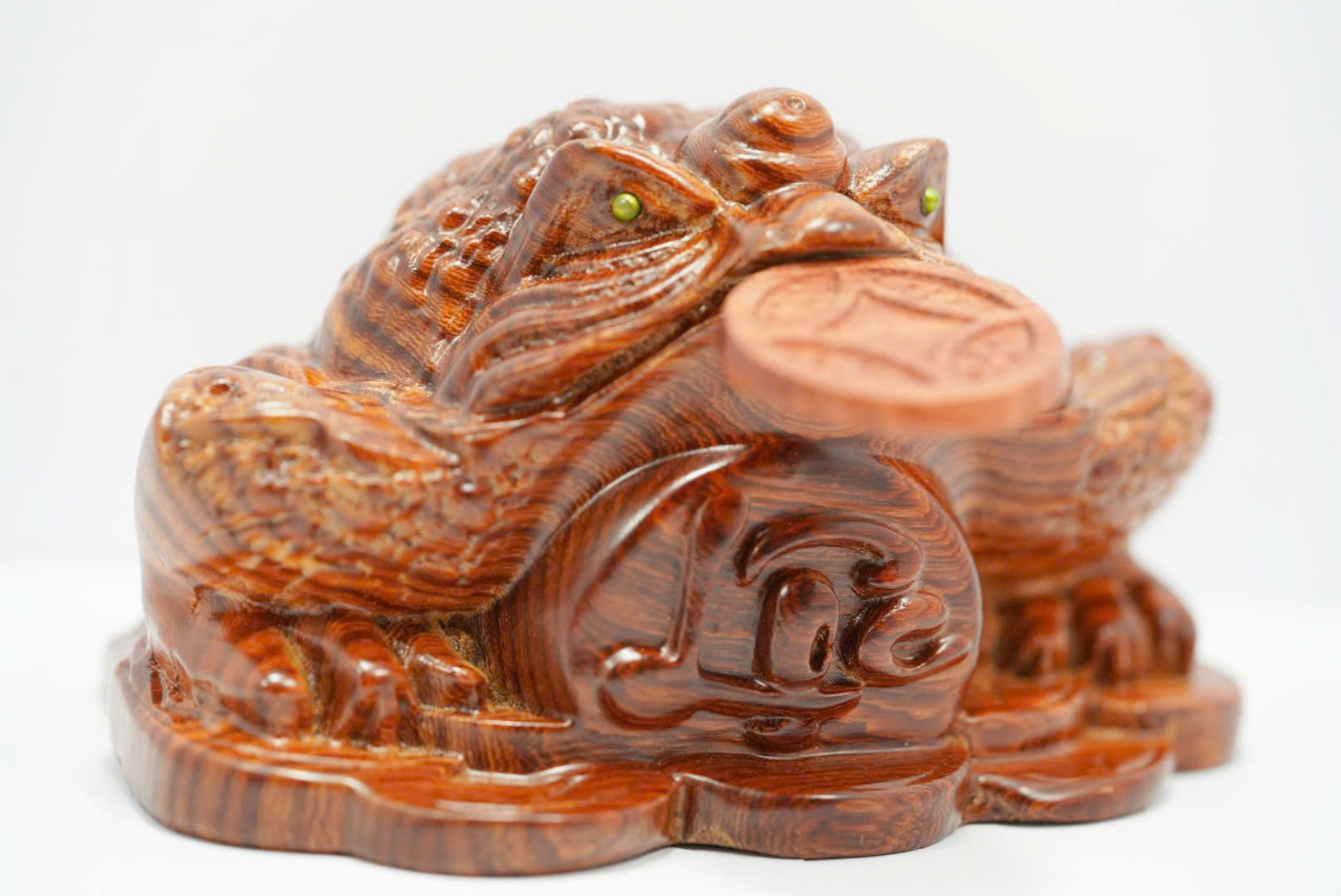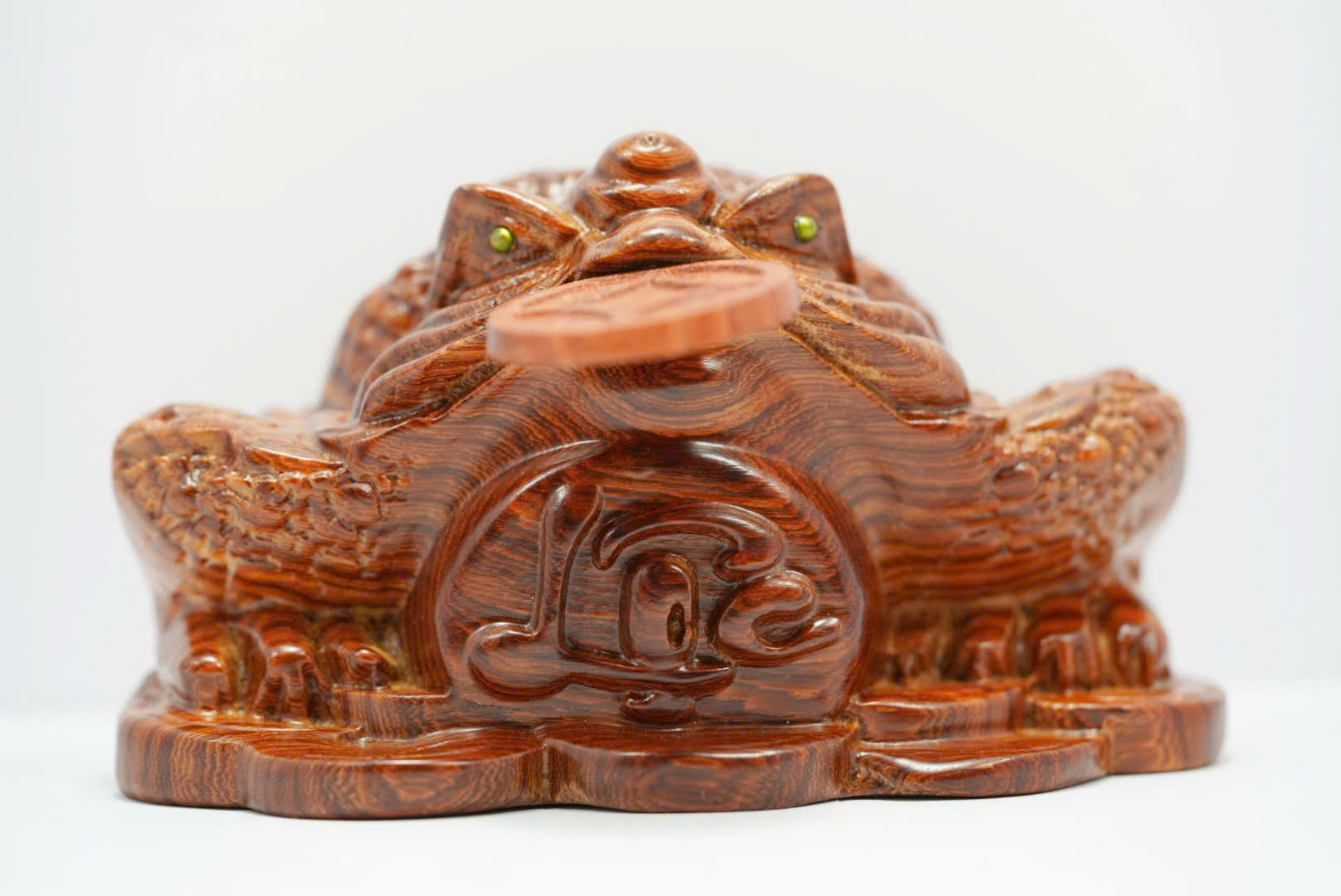 Tượng Cóc Ngậm Tiền Gỗ Trắc Vân – Thiềm Thừ Phong Thủy Chiêu Tài Đón Lộc