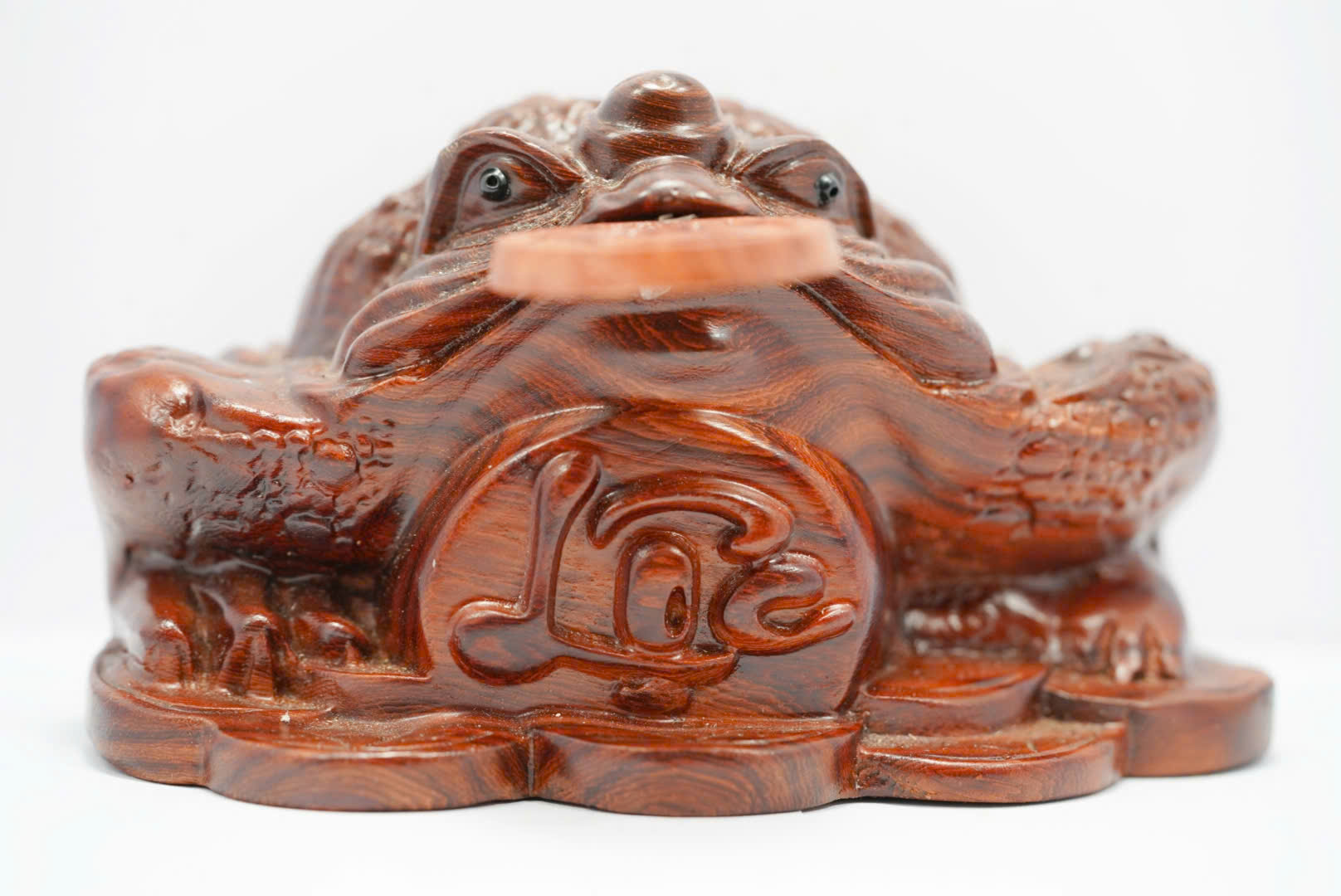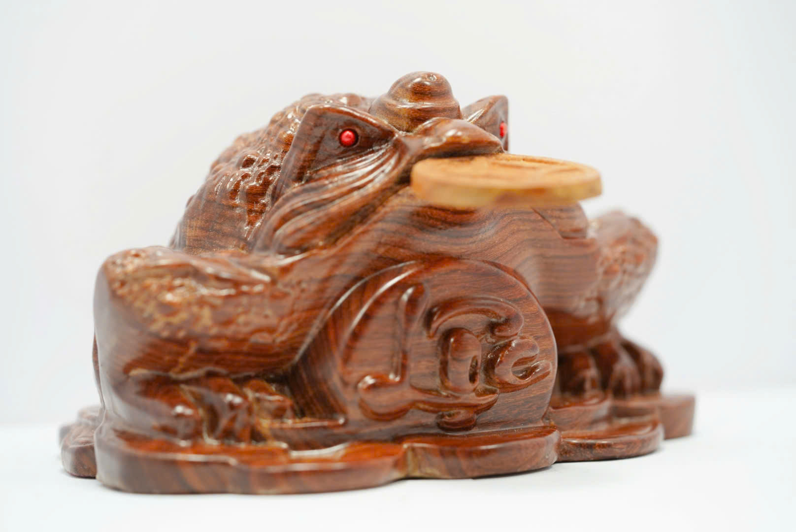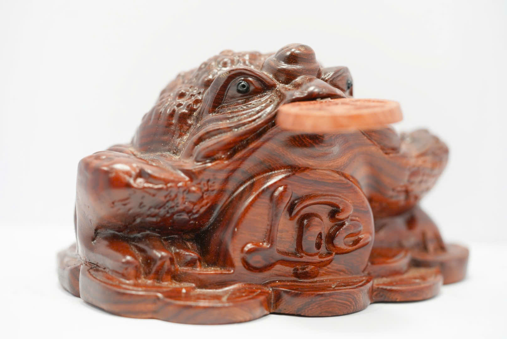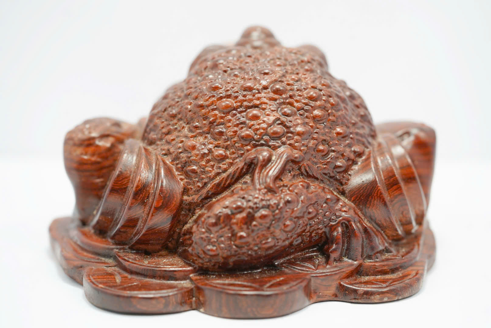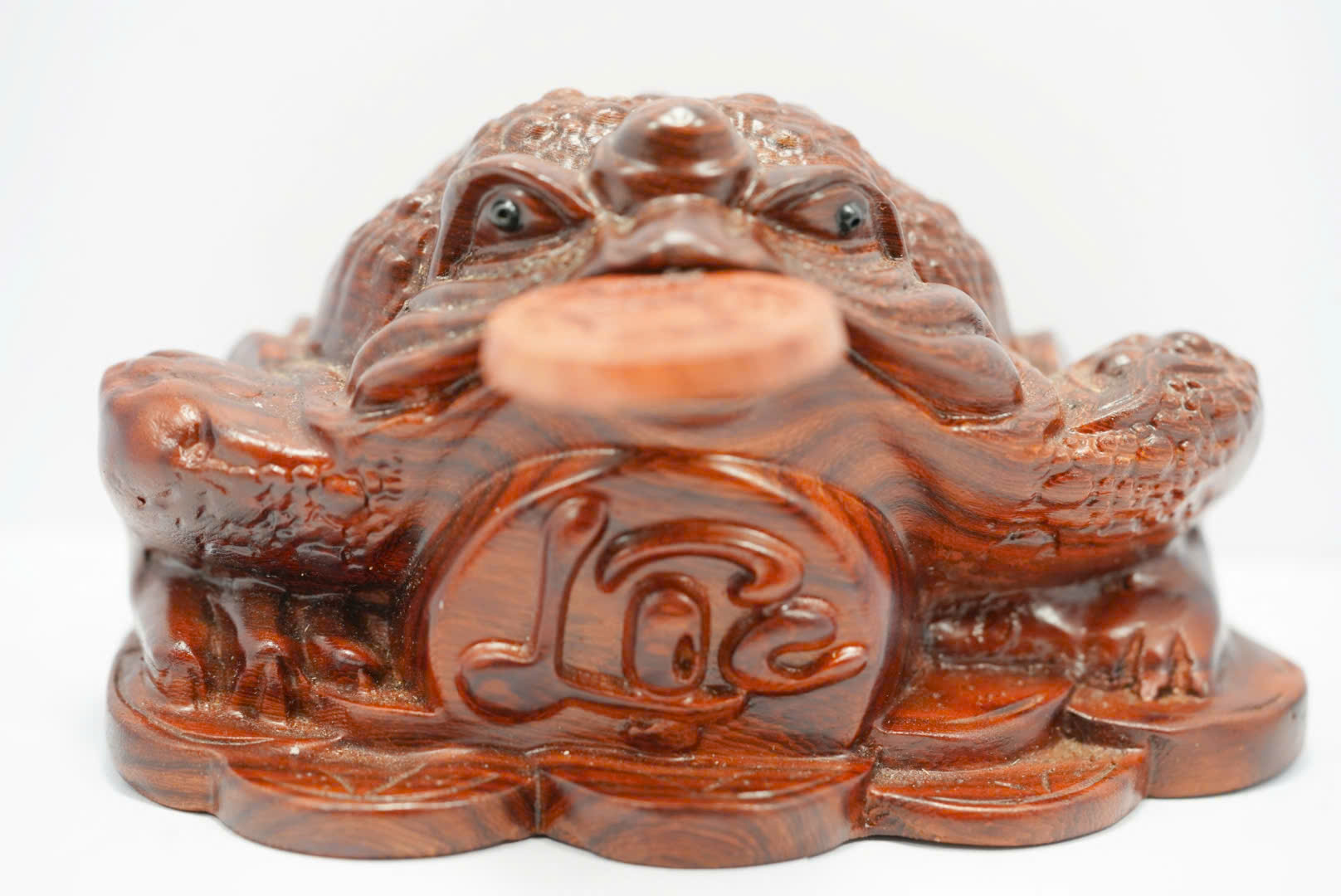 Tượng Cóc Ngậm Tiền Gỗ Trắc Vân – Thiềm Thừ Phong Thủy Chiêu Tài Đón Lộc
