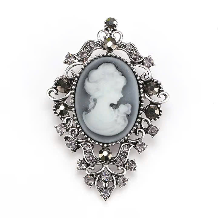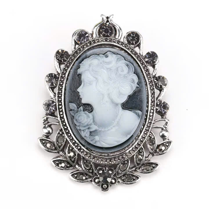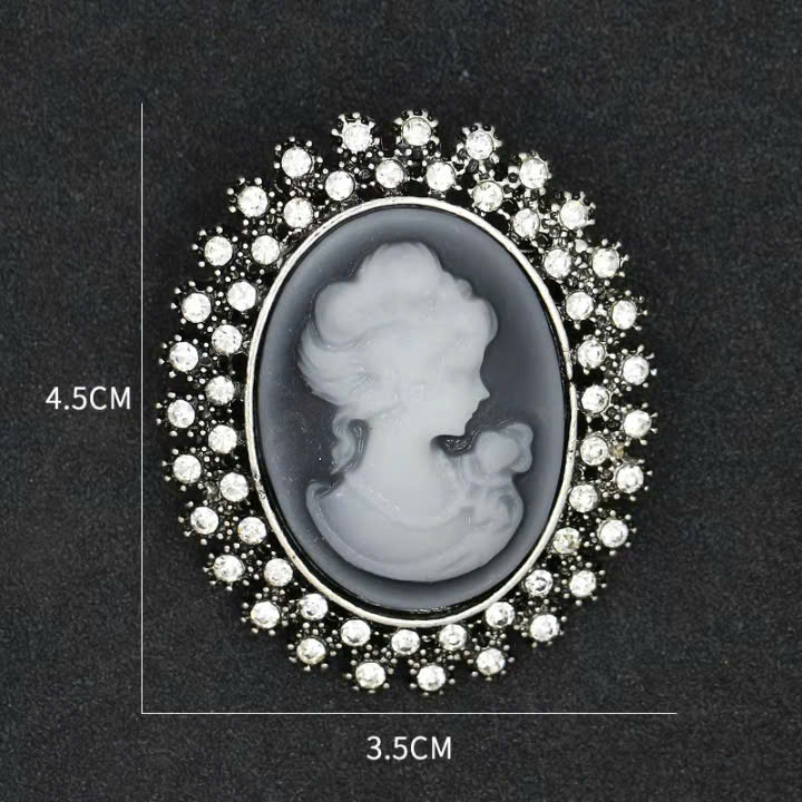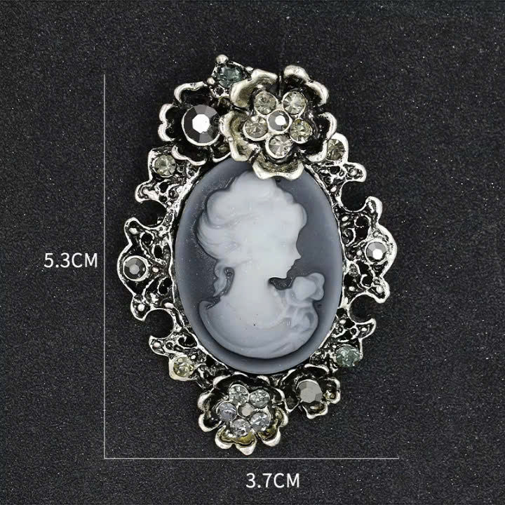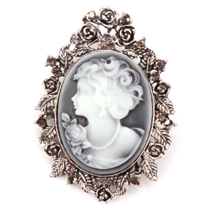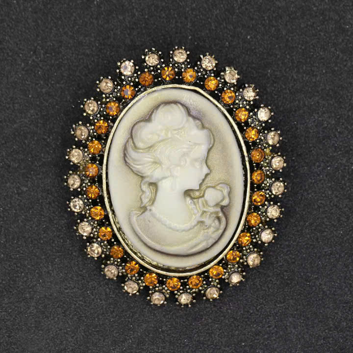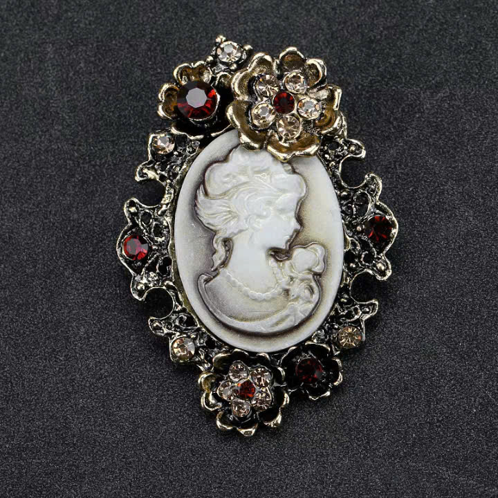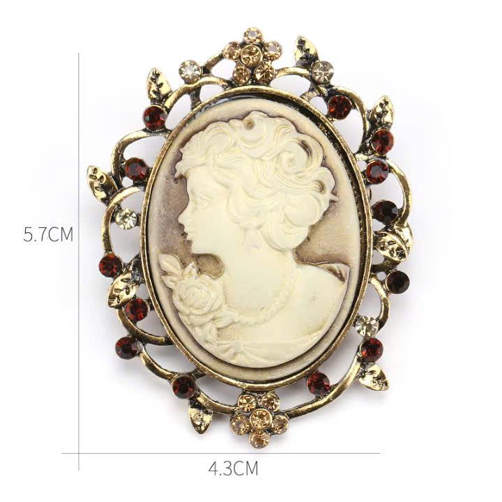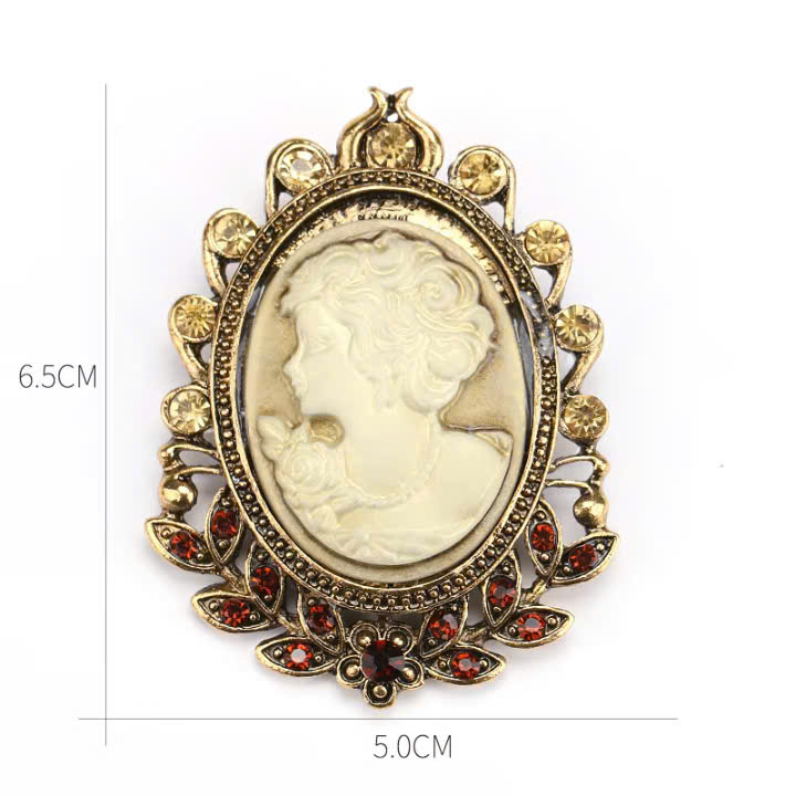 Cài áo hợp kim cao cấp thiết kế theo phong cách cổ điển châu Âu với mặt cameo khắc hình chân dung quý cô thanh lịch, mang lại vẻ đẹp tinh tế và quý phái.