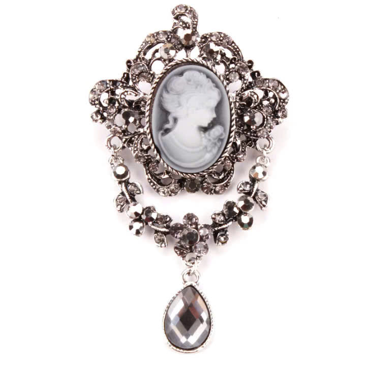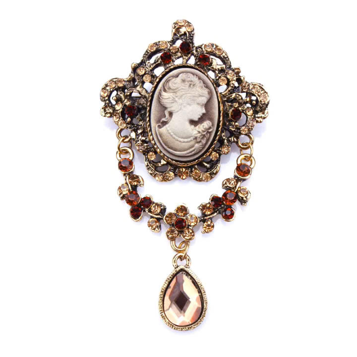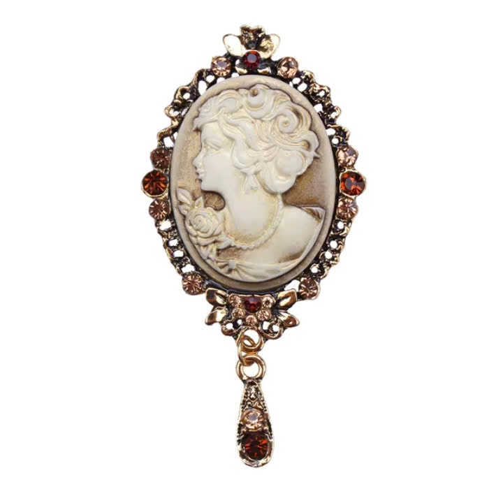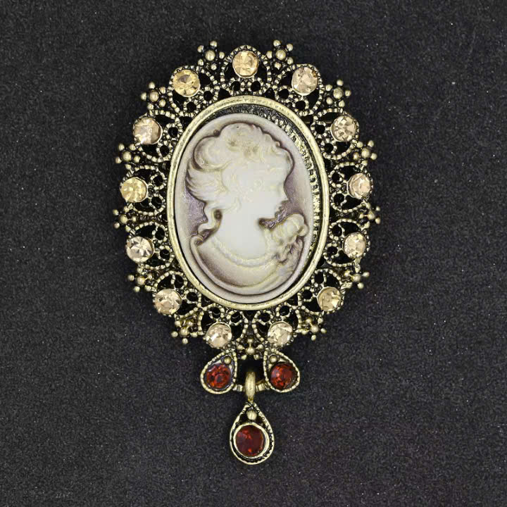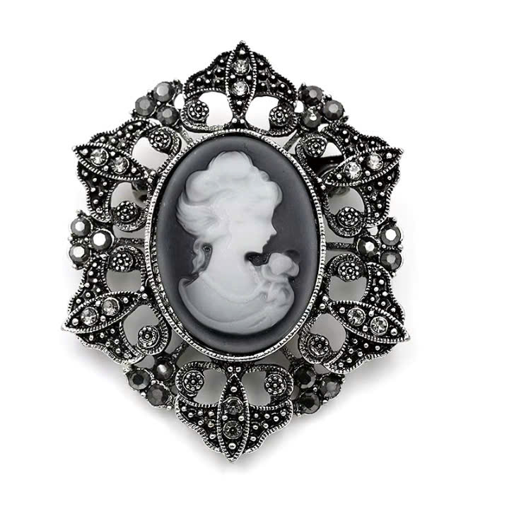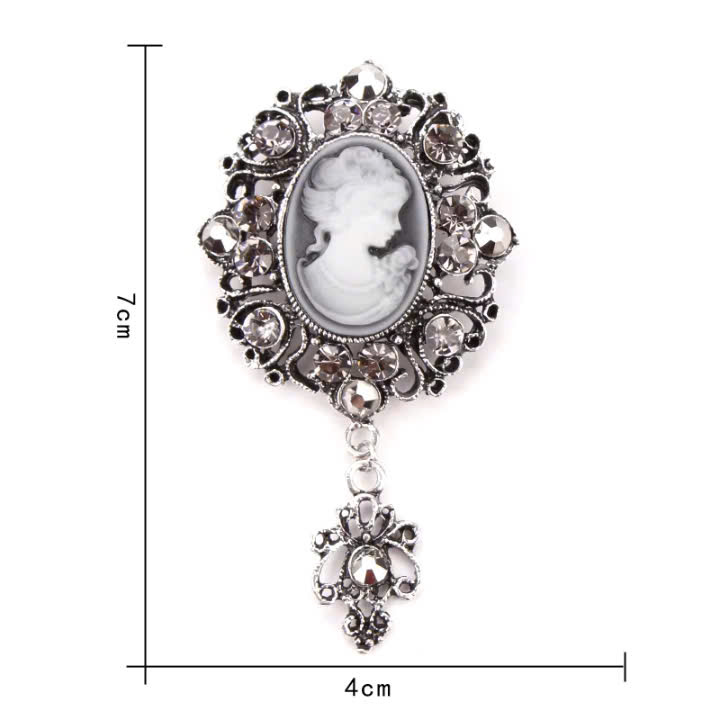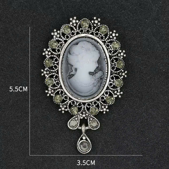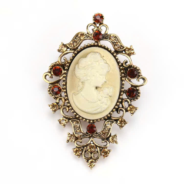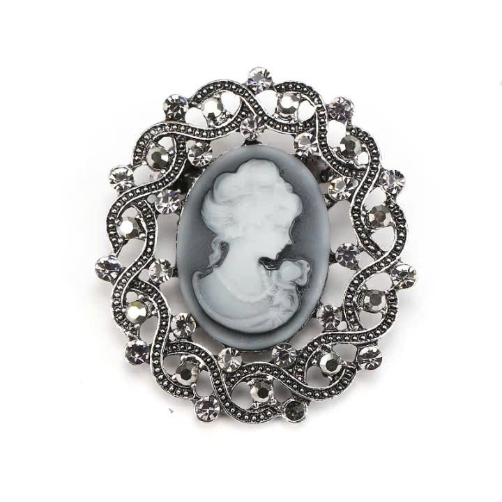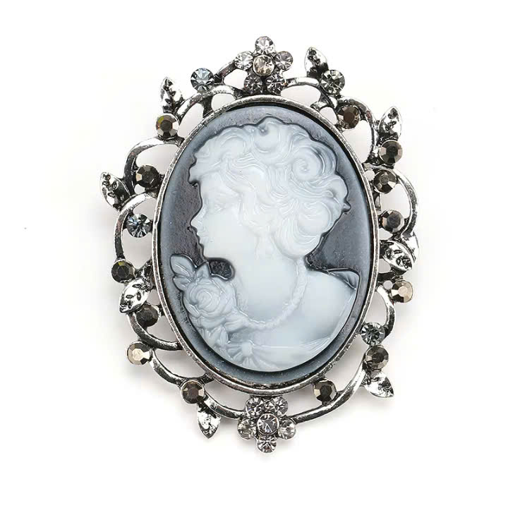 Cài áo hợp kim cao cấp thiết kế theo phong cách cổ điển châu Âu với mặt cameo khắc hình chân dung quý cô thanh lịch, mang lại vẻ đẹp tinh tế và quý phái.