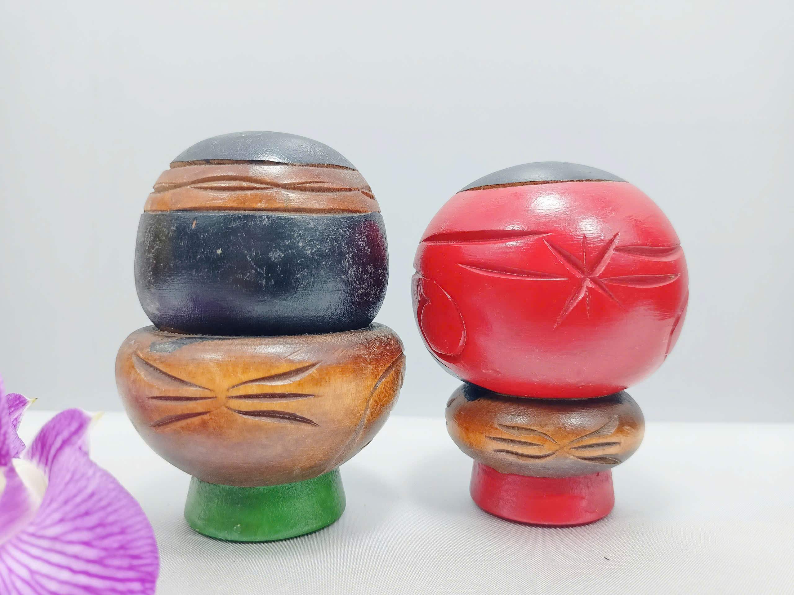 🎎 Cặp Tượng Kokeshi Koropokkuru Truyền Thống Nhật Bản – Hàng Secondhand Sưu Tầm