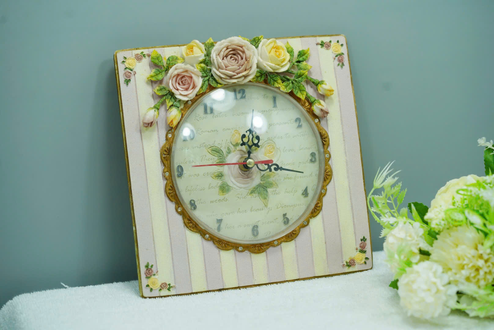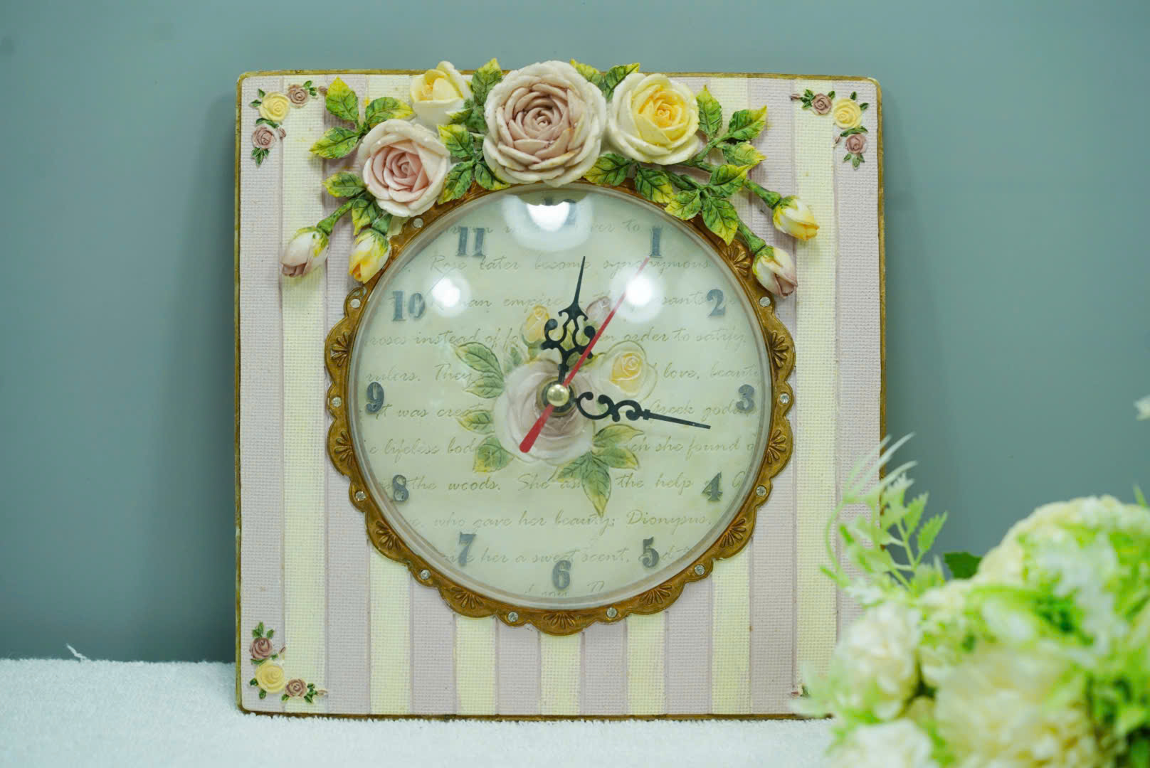 Tên sản phẩm: Đồng Hồ Treo Tường Hoa Hồng Cổ Điển Vintage