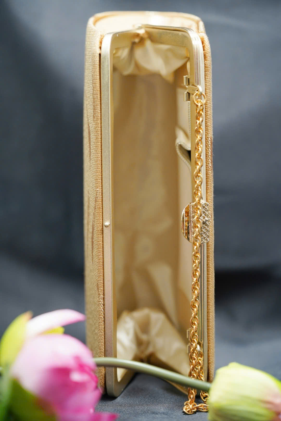 Túi xách dự tiệc TX57 – Tông vàng be ánh kim, thiết kế tối giản thanh lịch, sang trọng – Secondhand