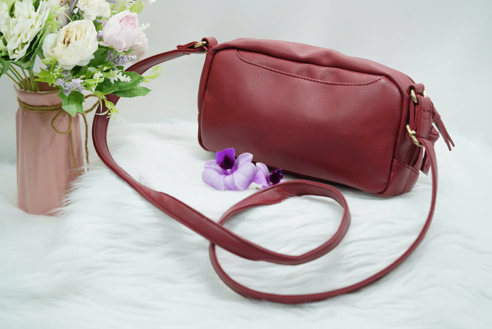 👜 Túi Xách TX49 – Da Đỏ Đô Dây Đeo Dài Cổ Điển