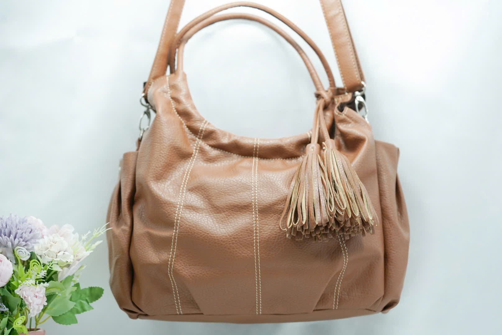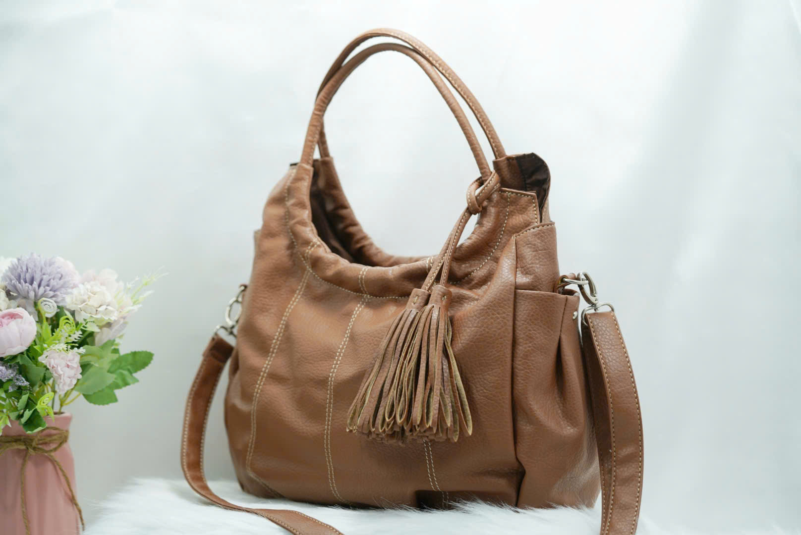 👜 Túi Xách TX54 – Da Mềm Màu Nâu Sữa, Tua Rua Cá Tính, Form Chuẩn Công Sở
