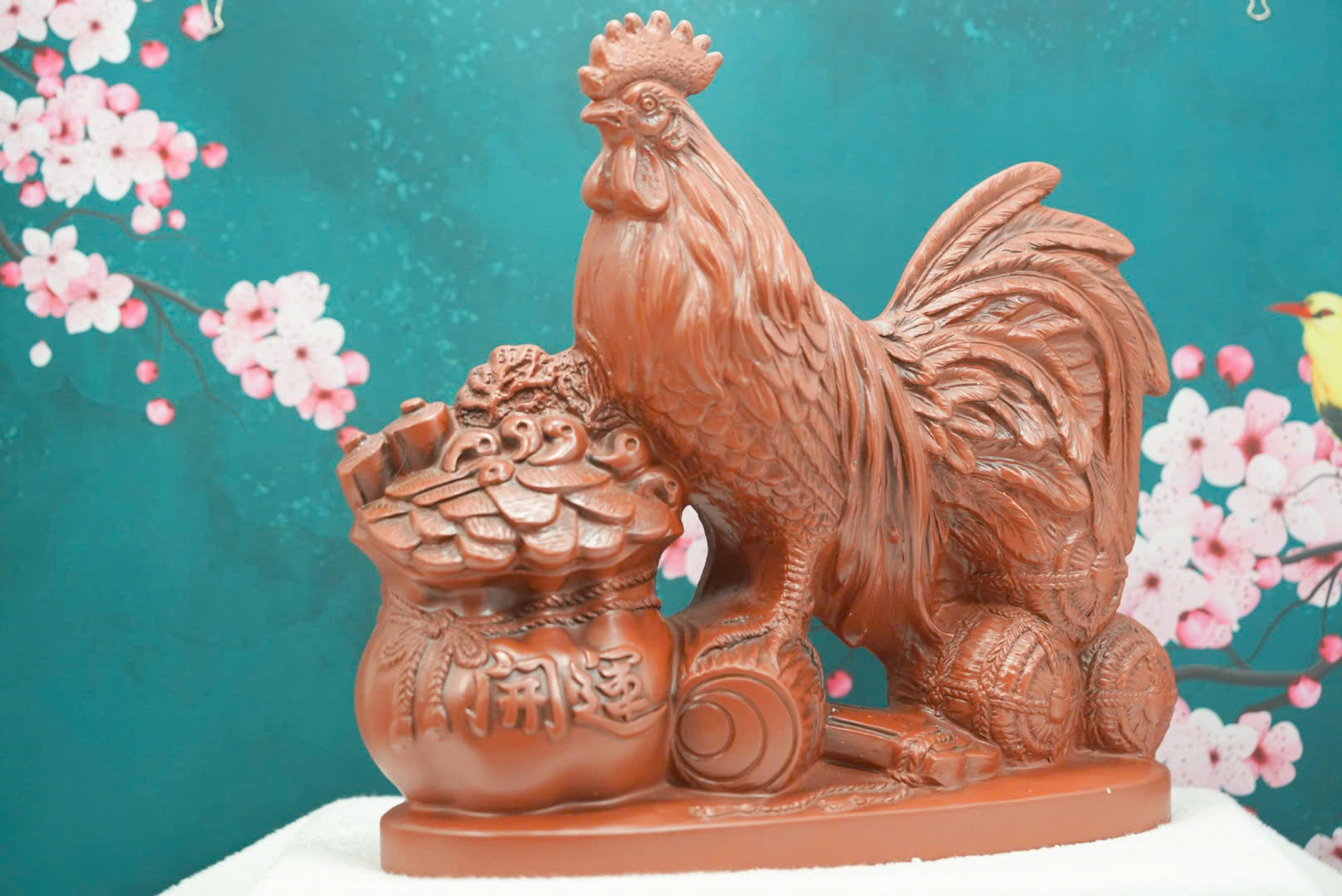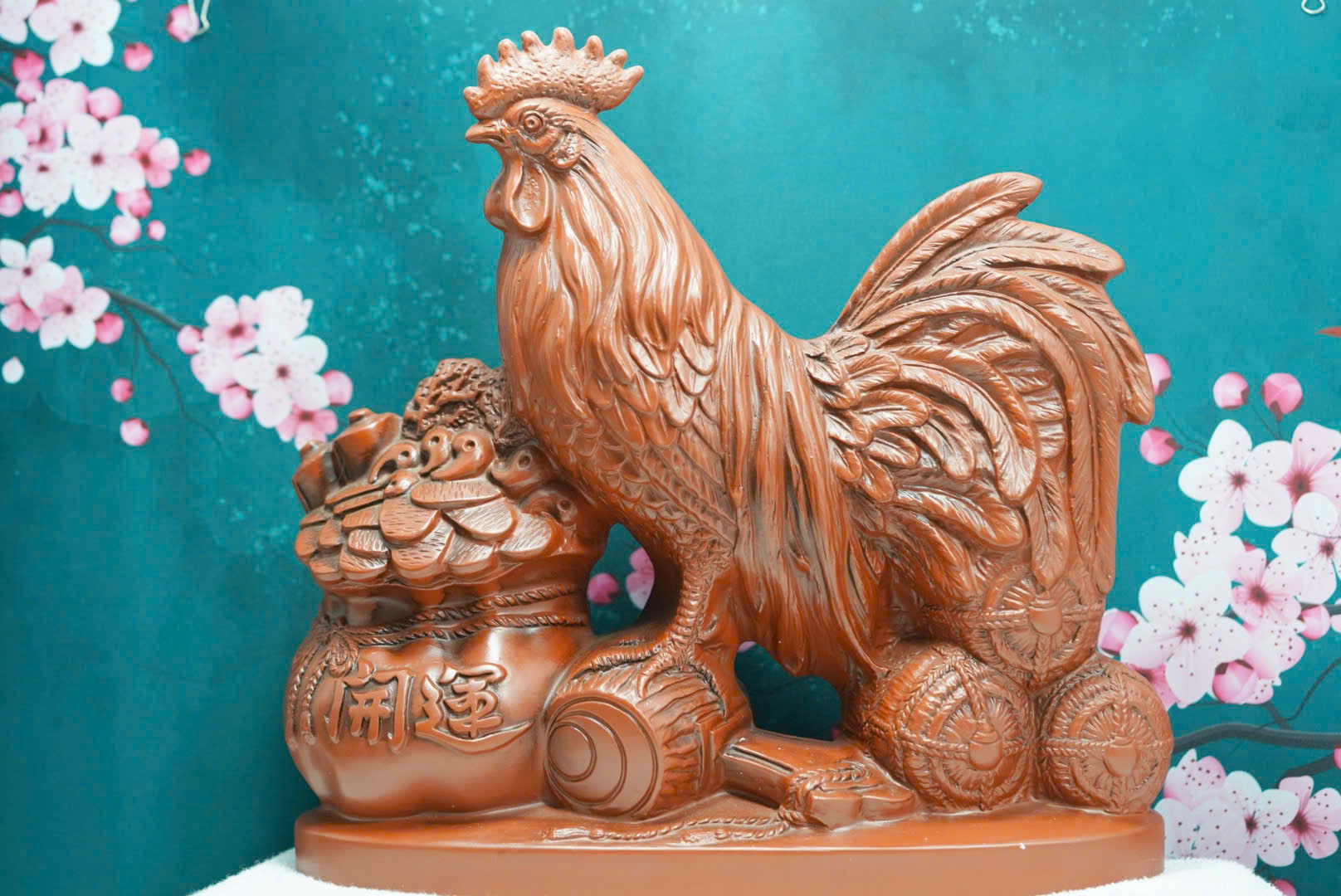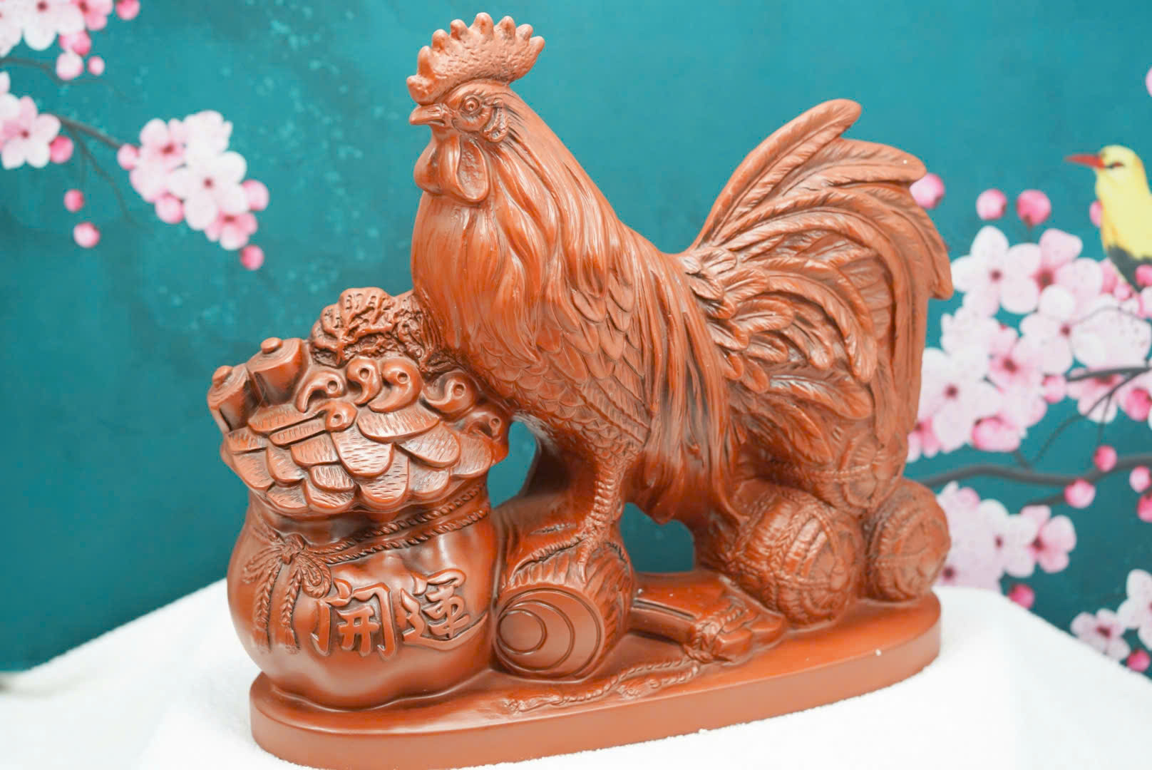 ✅ Thiết kế cân đối: tượng gà trống đứng hiên ngang, biểu tượng cho uy nghi và thịnh vượng.