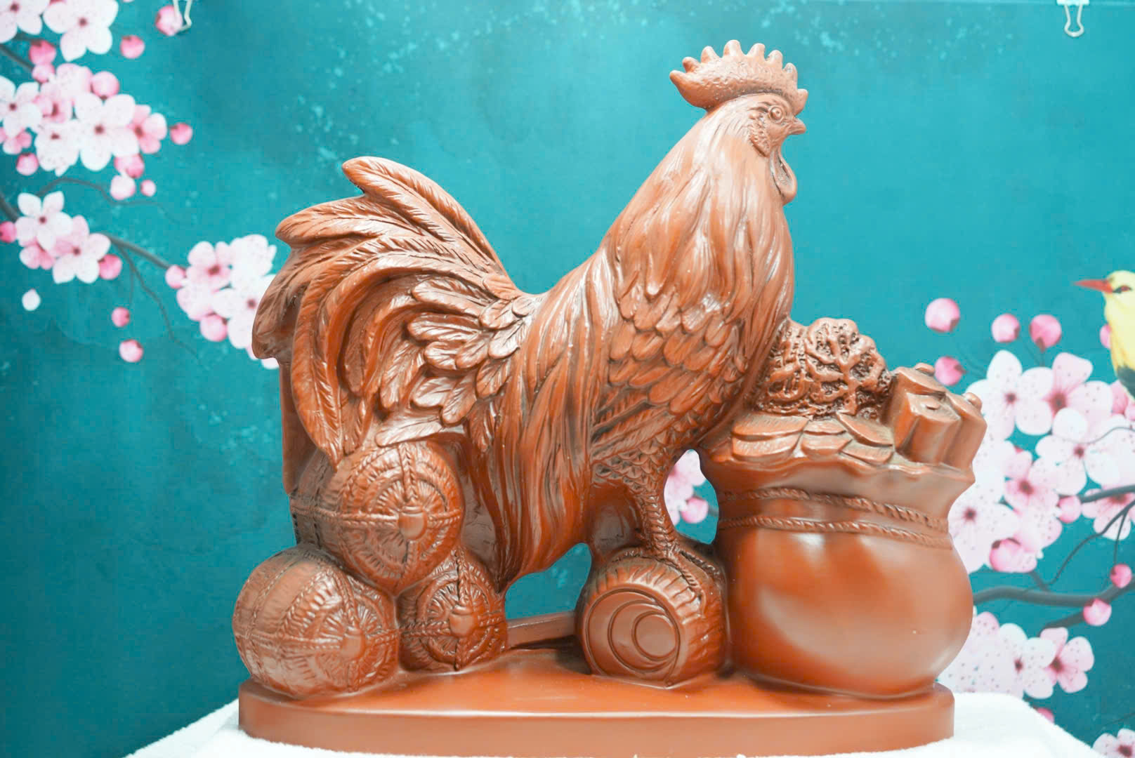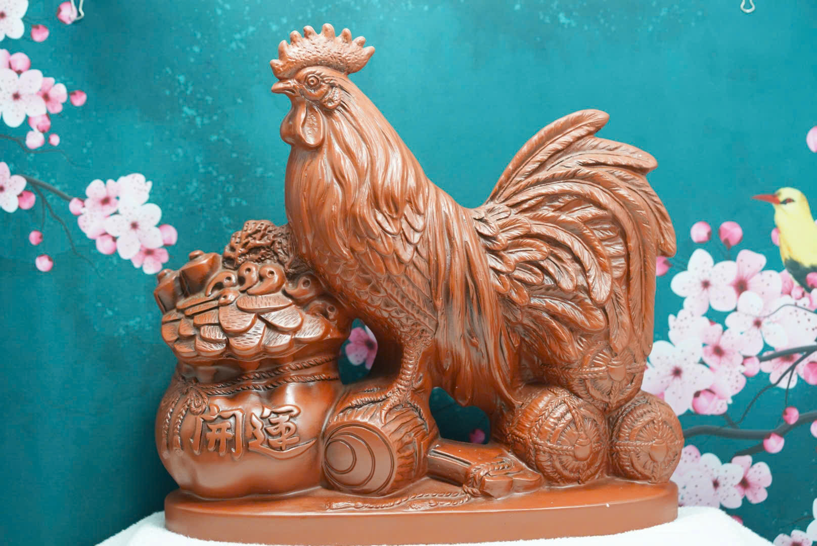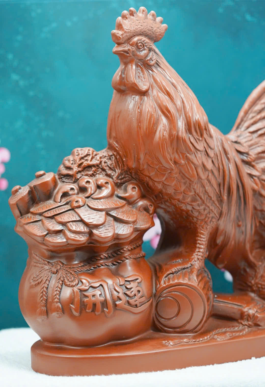 ✅ Thiết kế cân đối: tượng gà trống đứng hiên ngang, biểu tượng cho uy nghi và thịnh vượng.