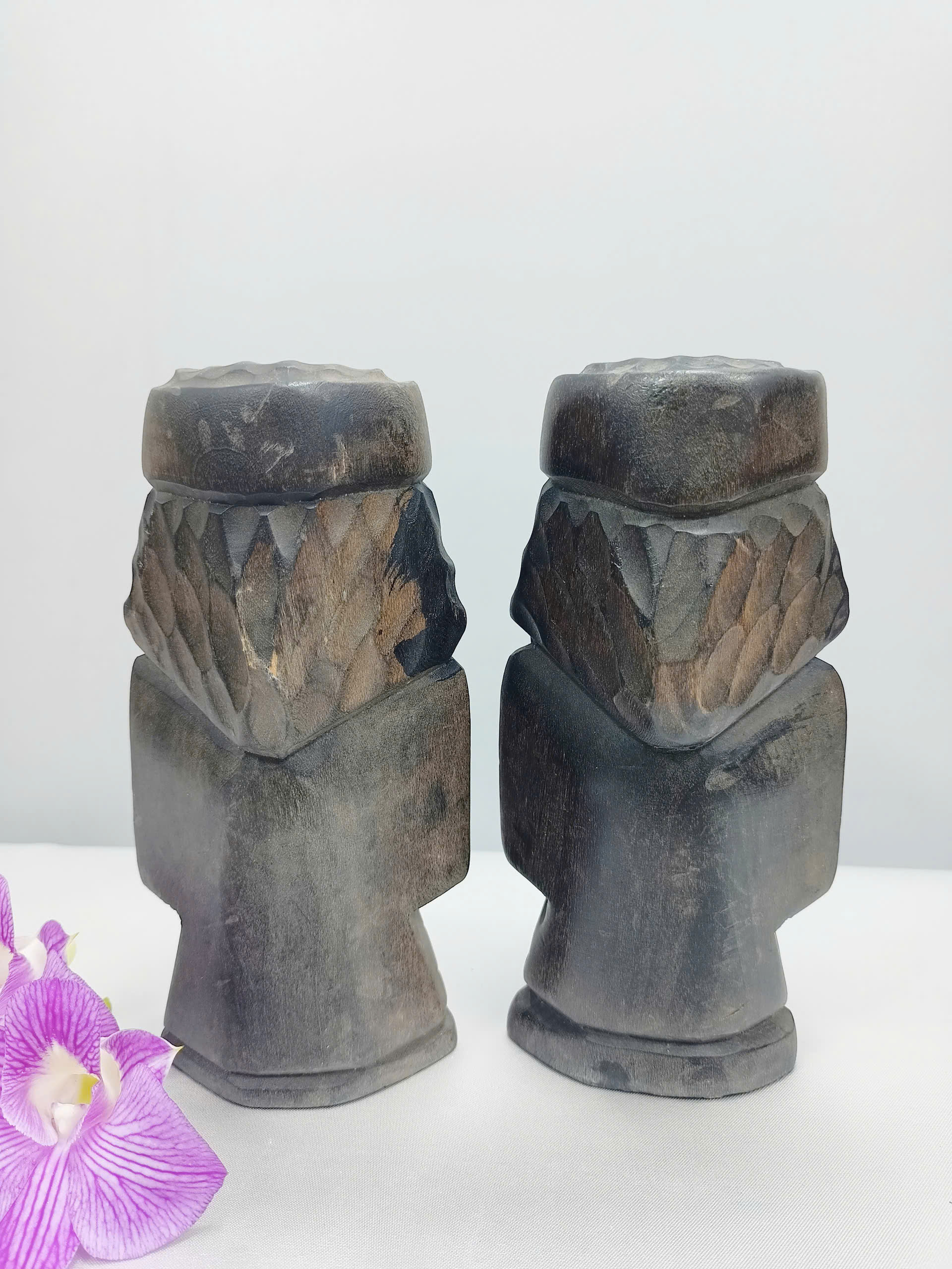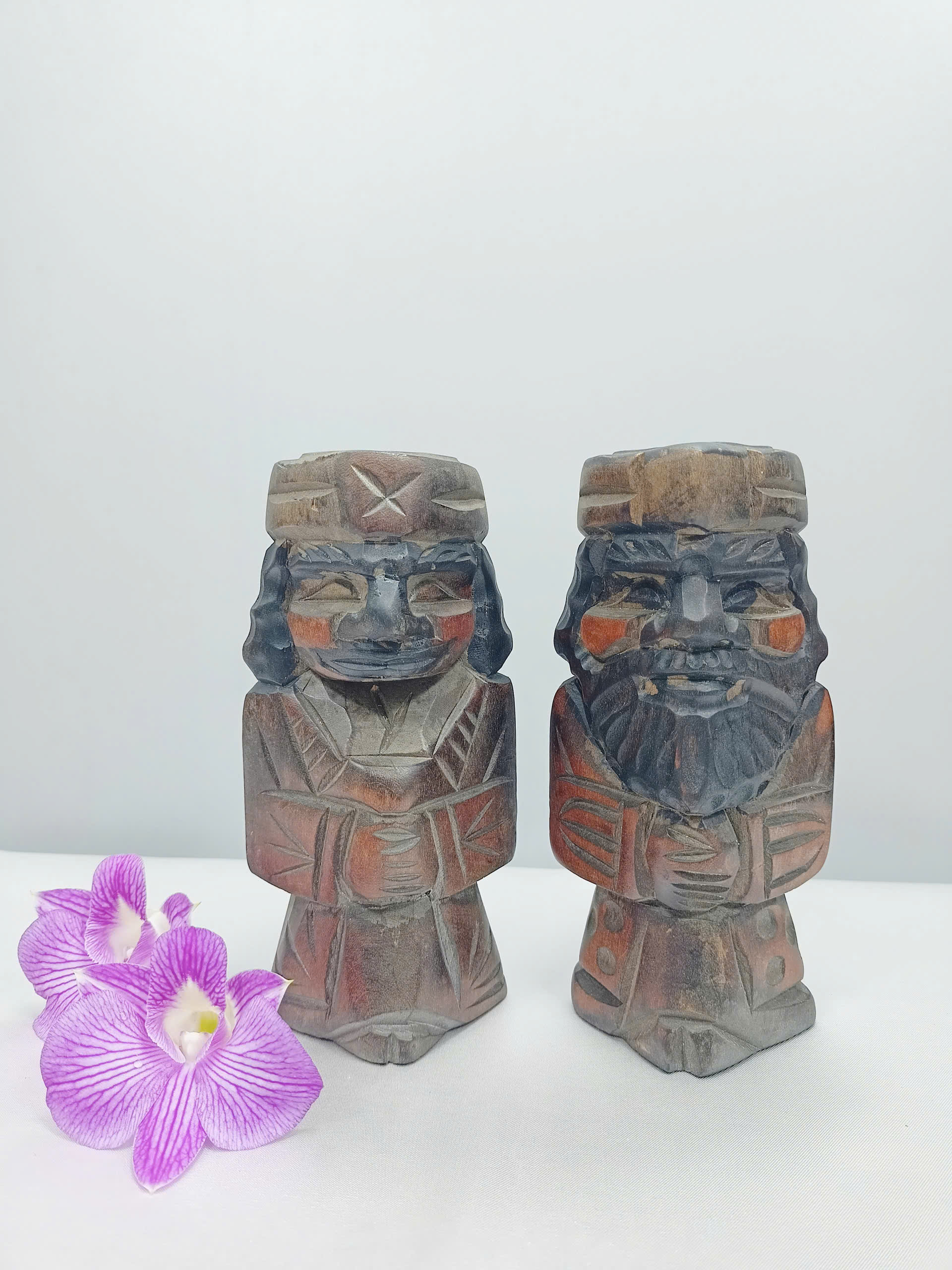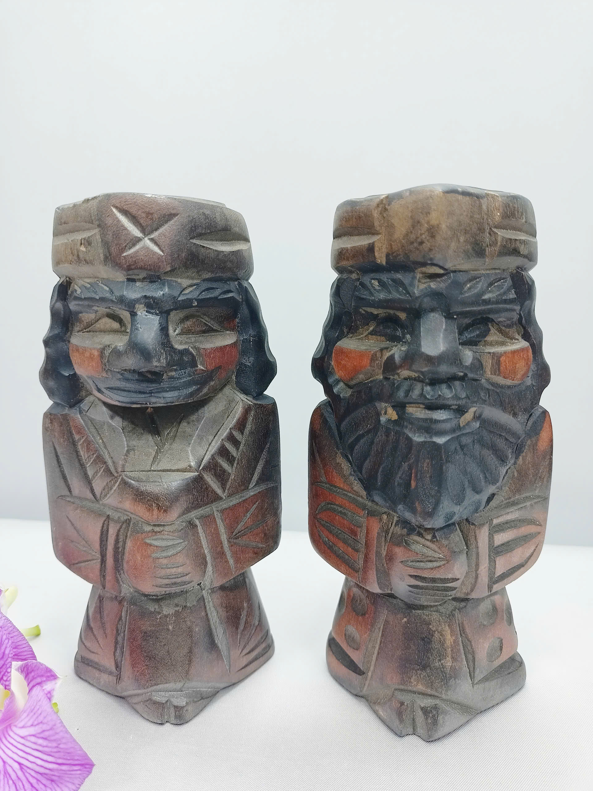Tượng Gỗ Nhỏ Đôi Ainu Nipopo Chạm Khắc — Hàng Secondhand Mini Thủ Công Độc Bản
