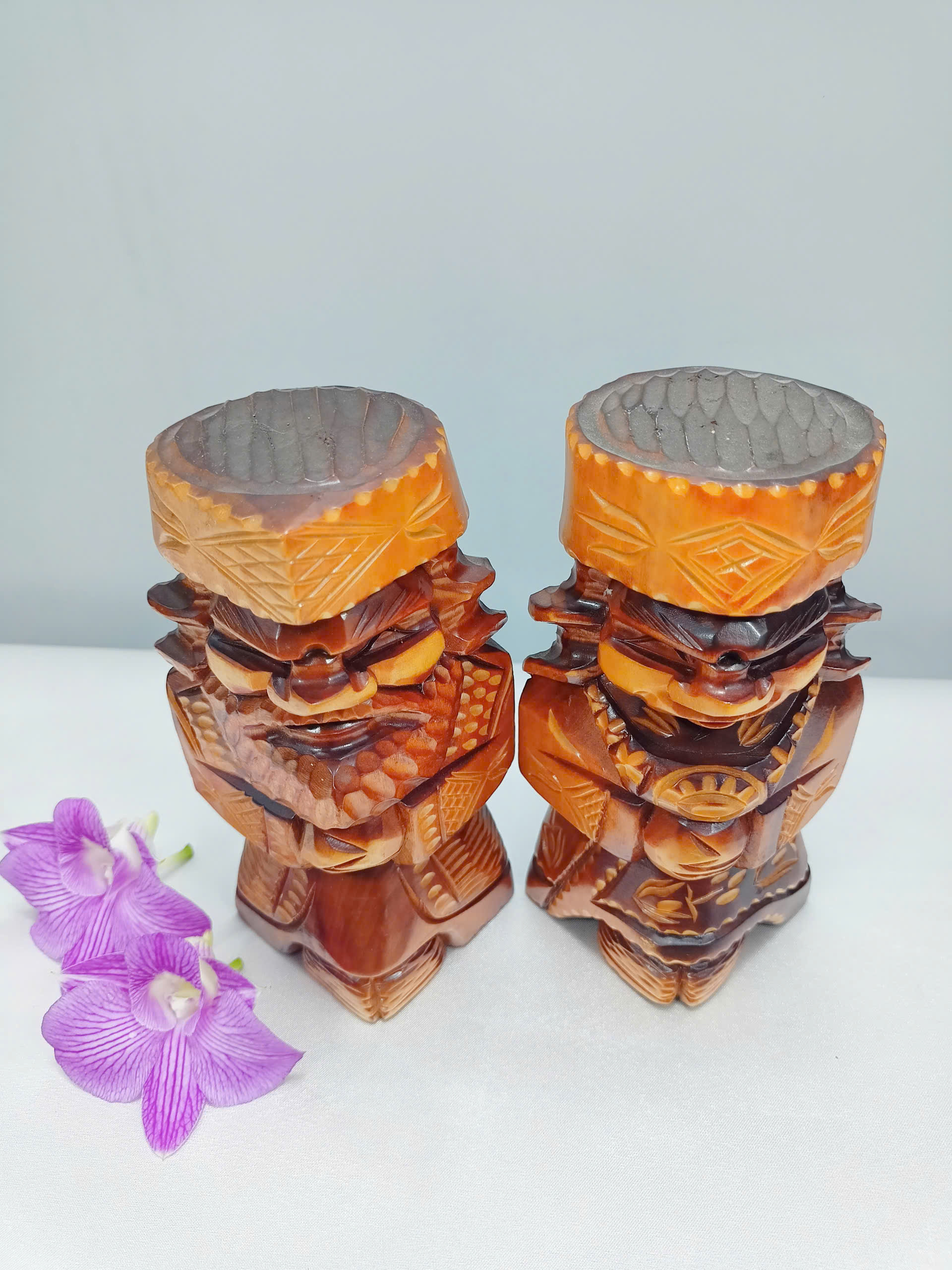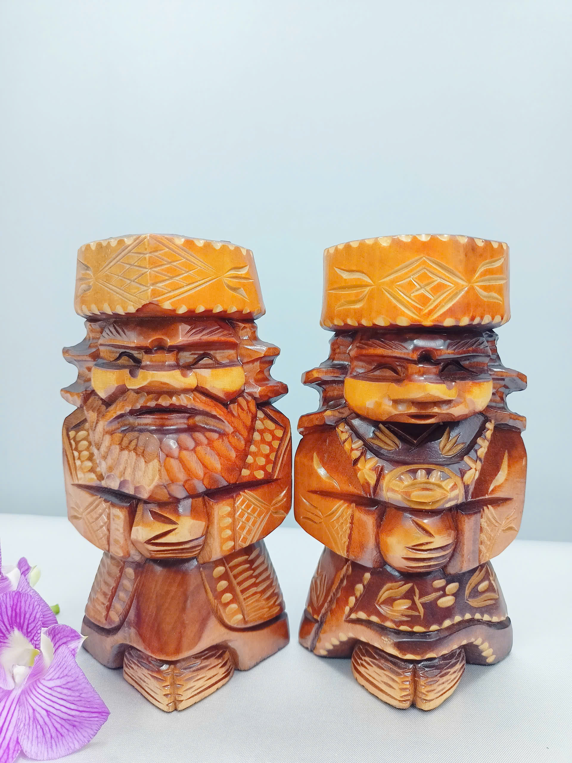 Tượng Gỗ Nhỏ Đôi Ainu Nipopo Chạm Khắc — Hàng Secondhand Thủ Công