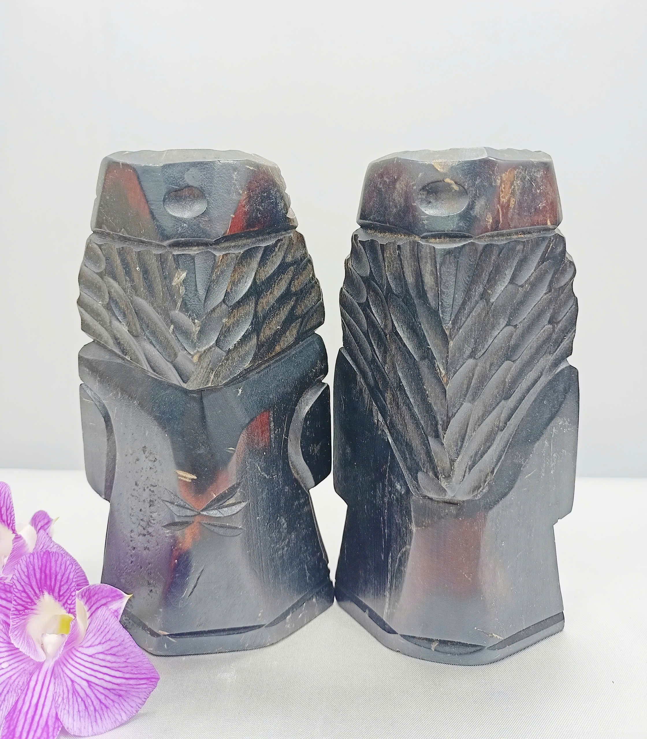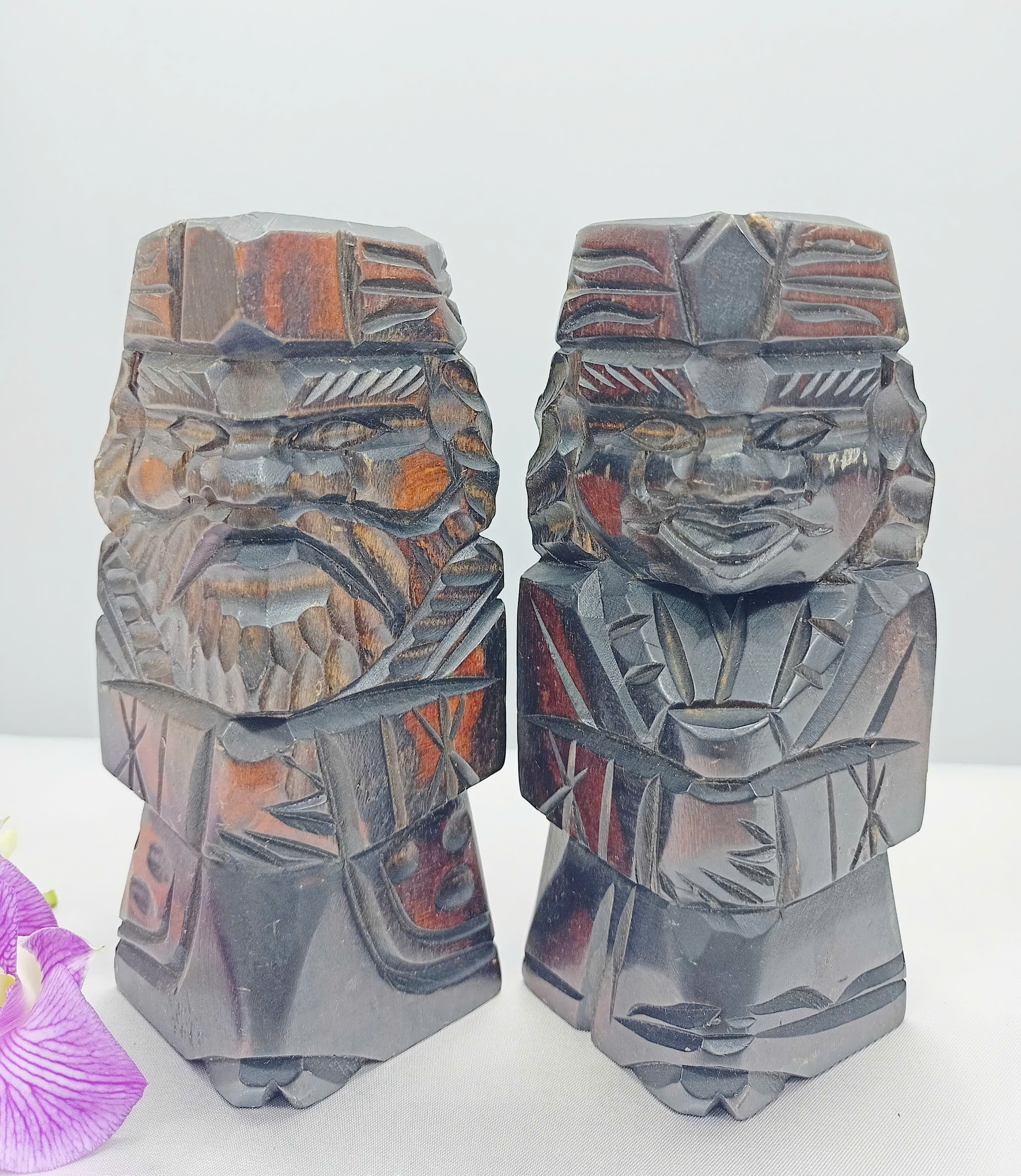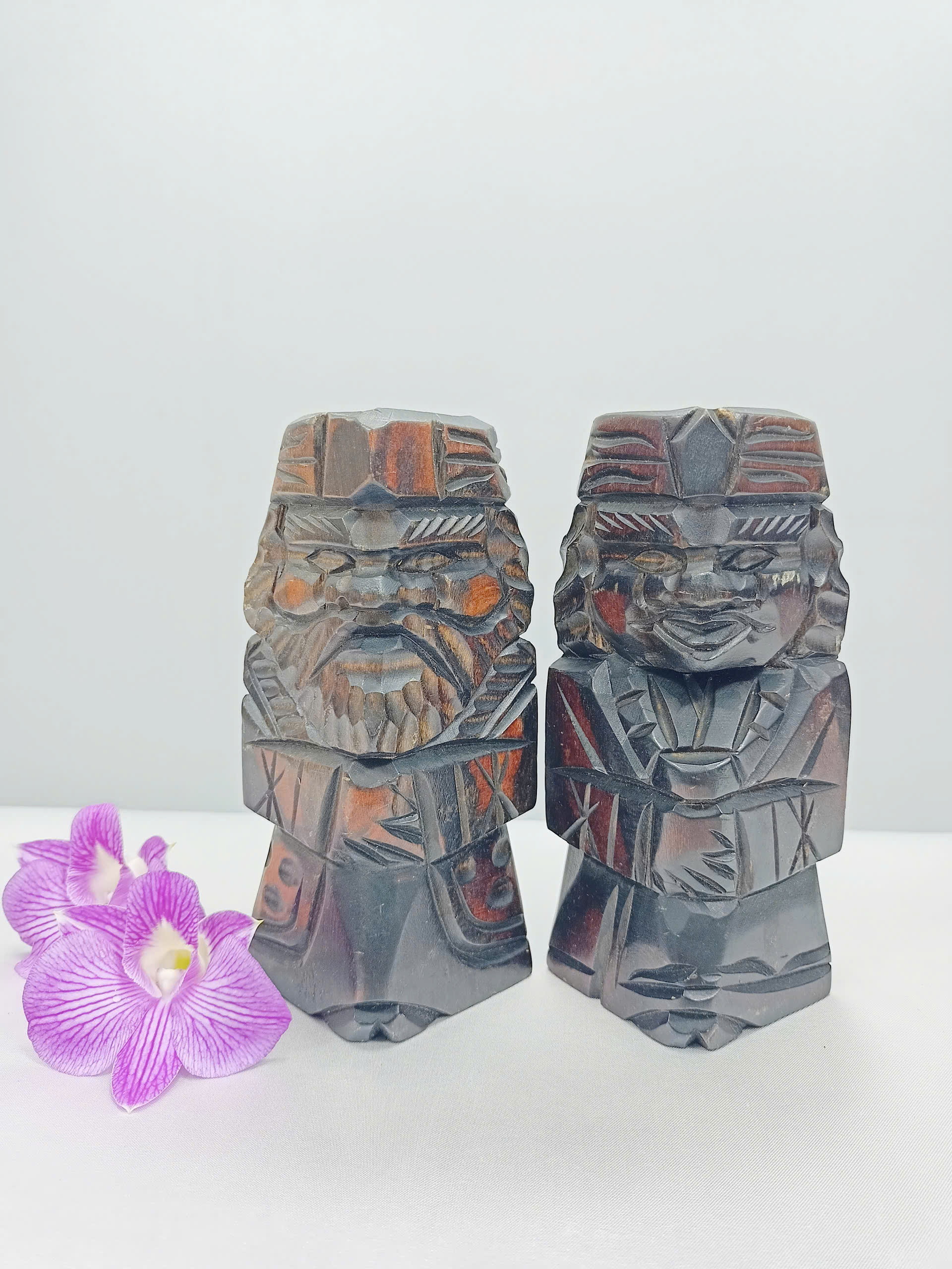 Tượng Gỗ Nhỏ Đôi Ainu Nipopo Chạm Khắc — Hàng Secondhand Thủ Công Truyền Thống