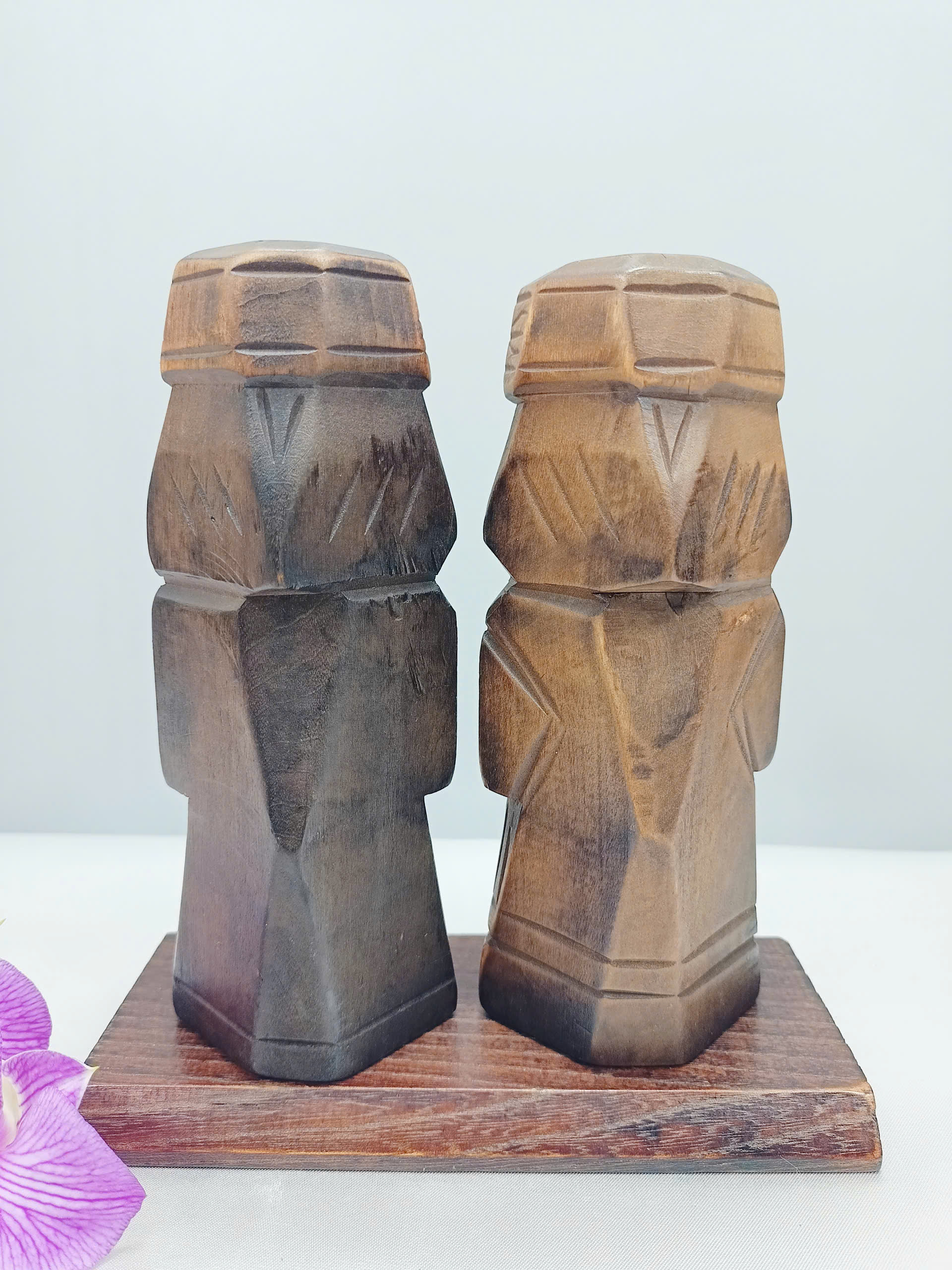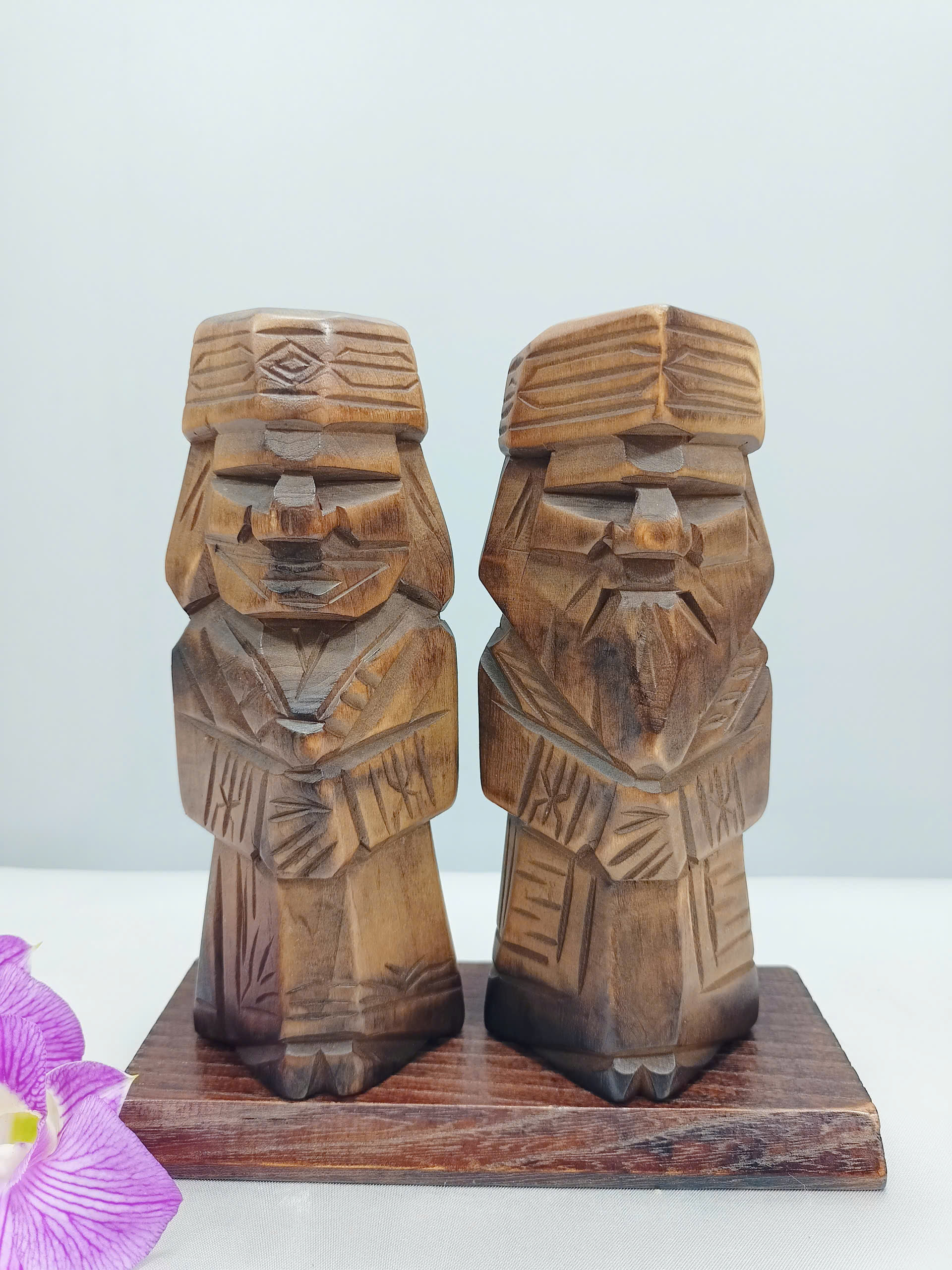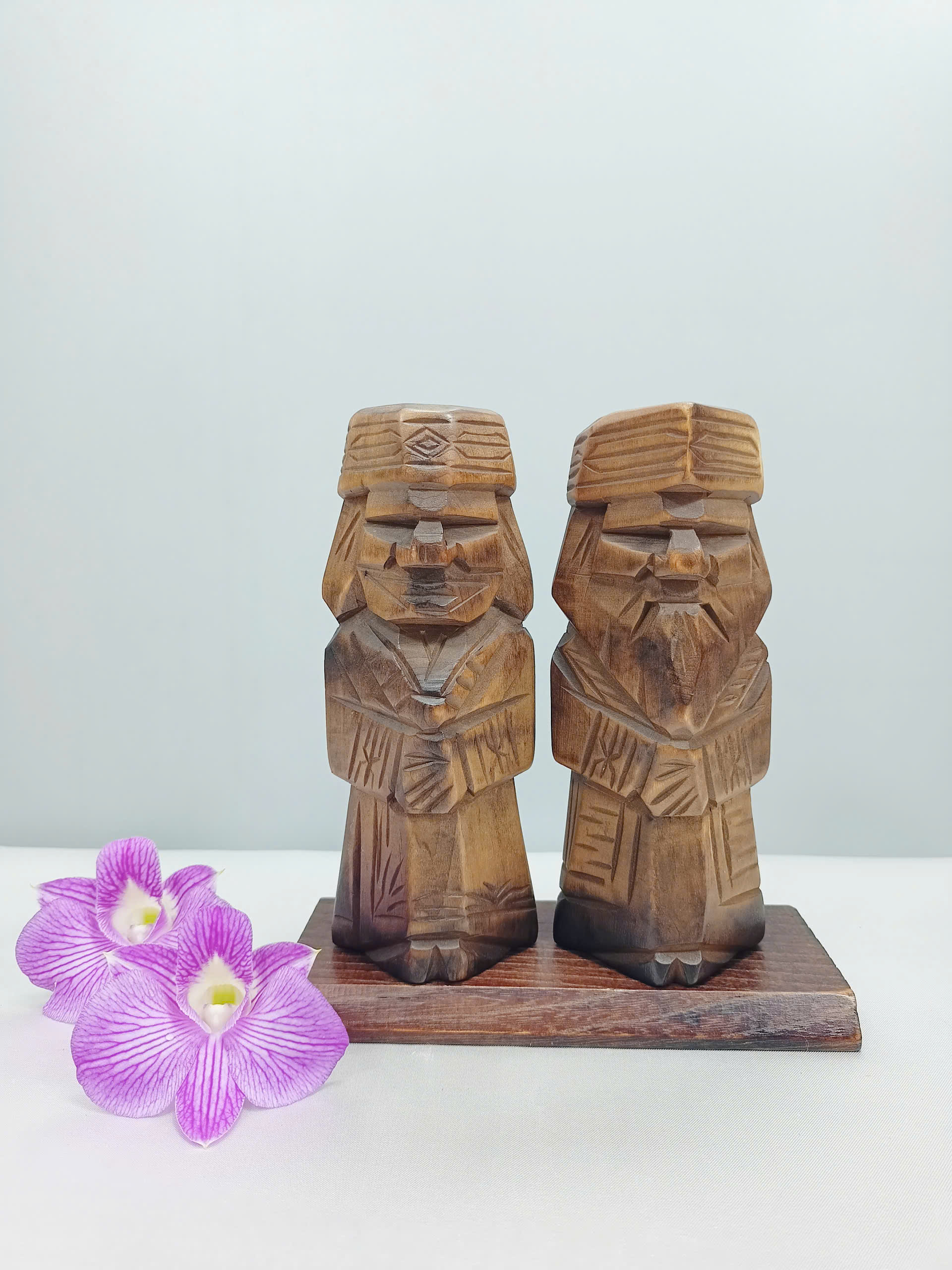 Tượng Gỗ Nhỏ Đôi Ainu Nipopo Chạm Khắc — Hàng Secondhand Thủ Công Mộc Mạc