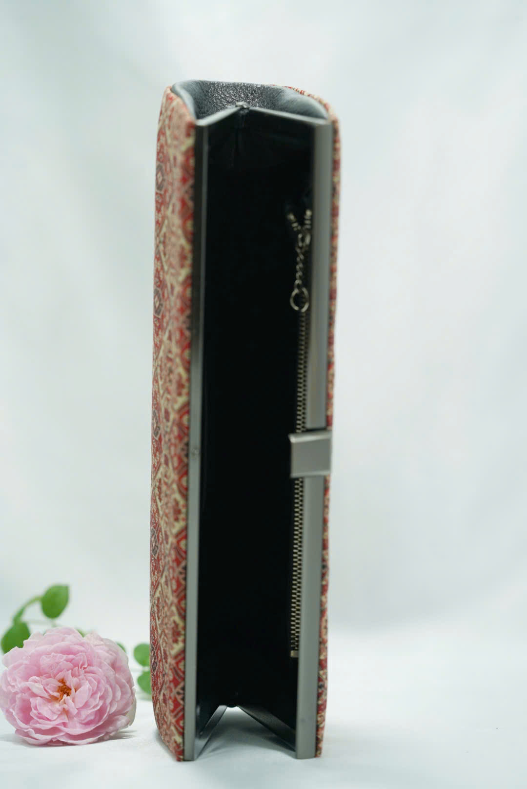 V029 – Ví Dài Vintage Họa Tiết Thổ Cẩm Đỏ – Secondhand Đẹp Như Mới