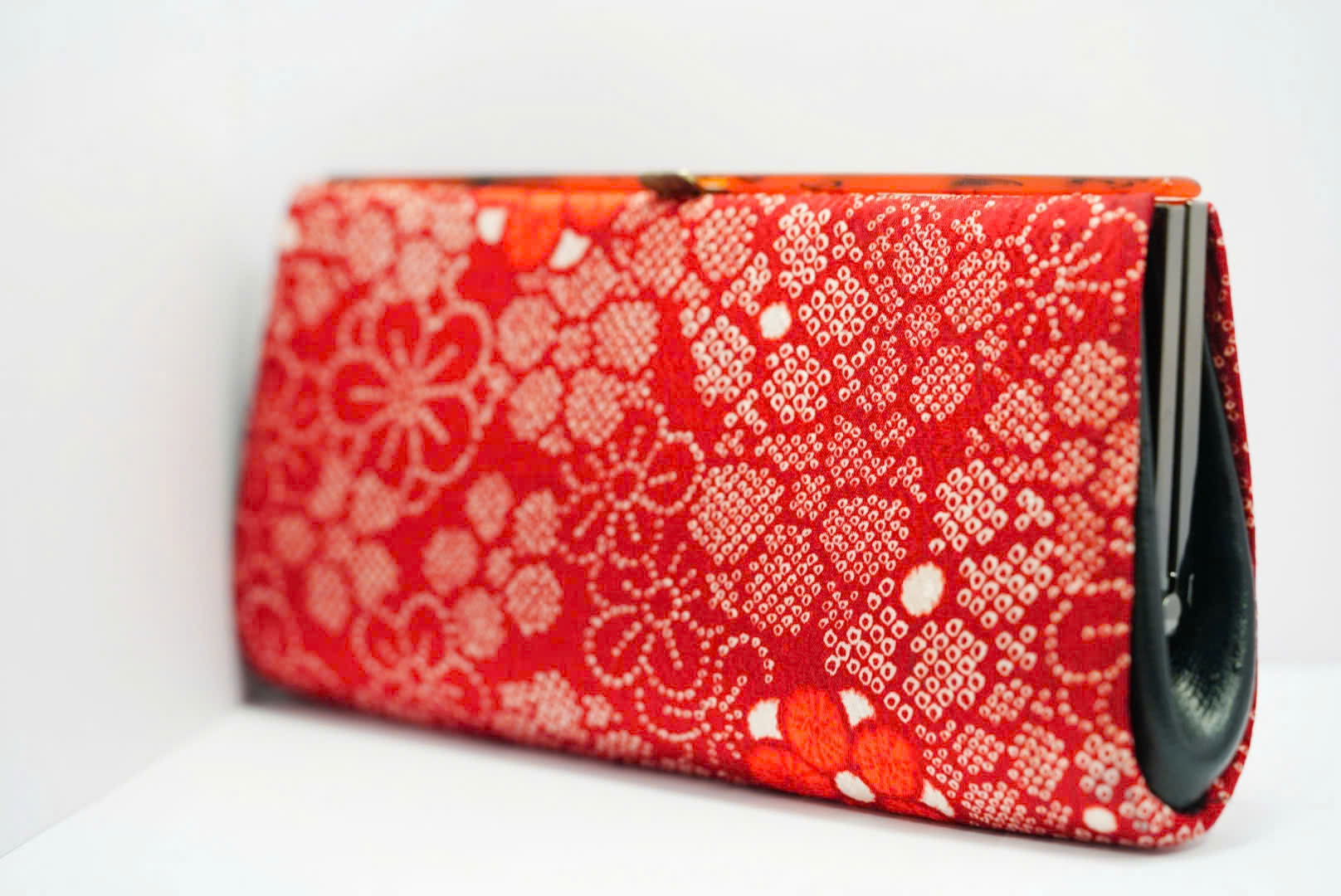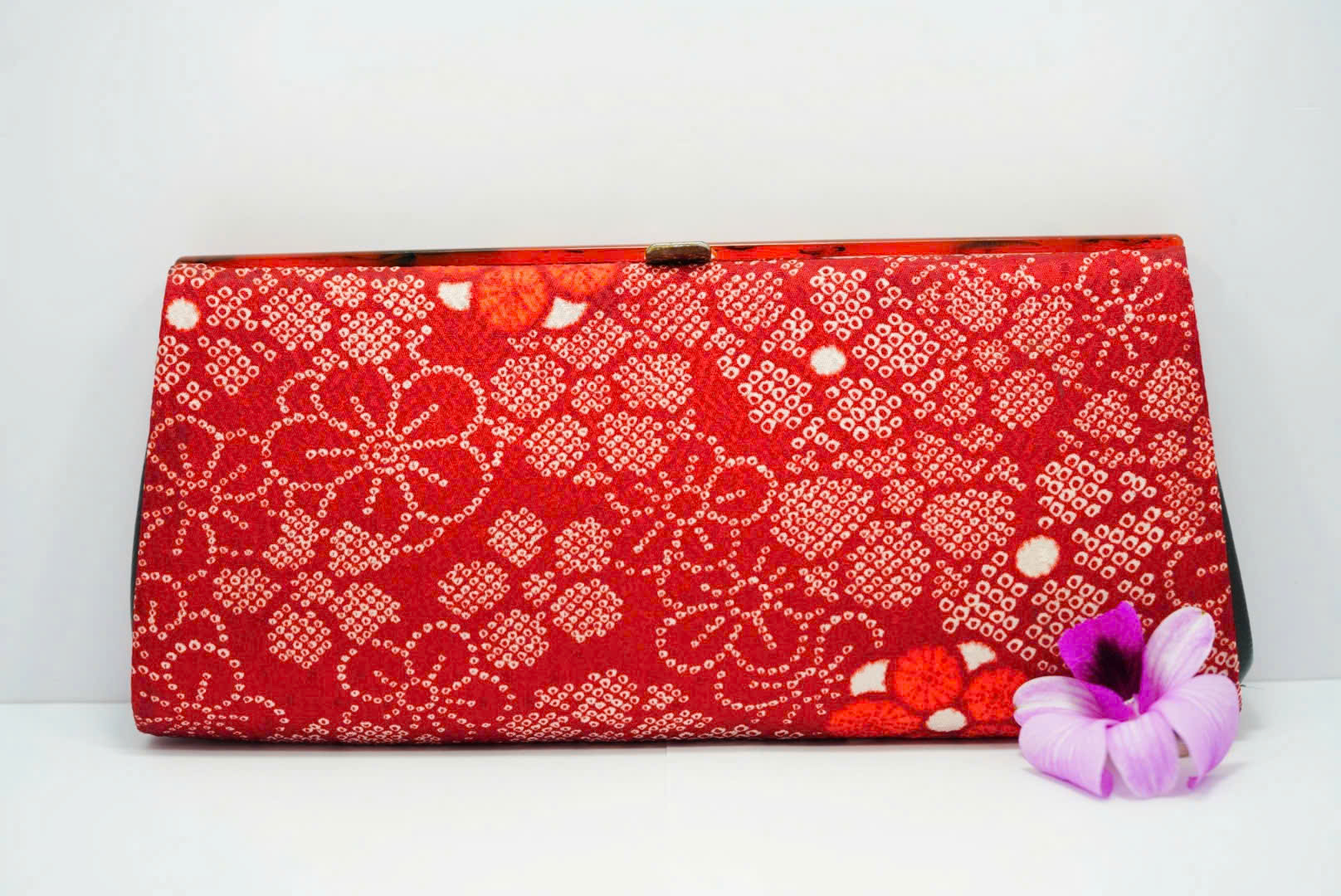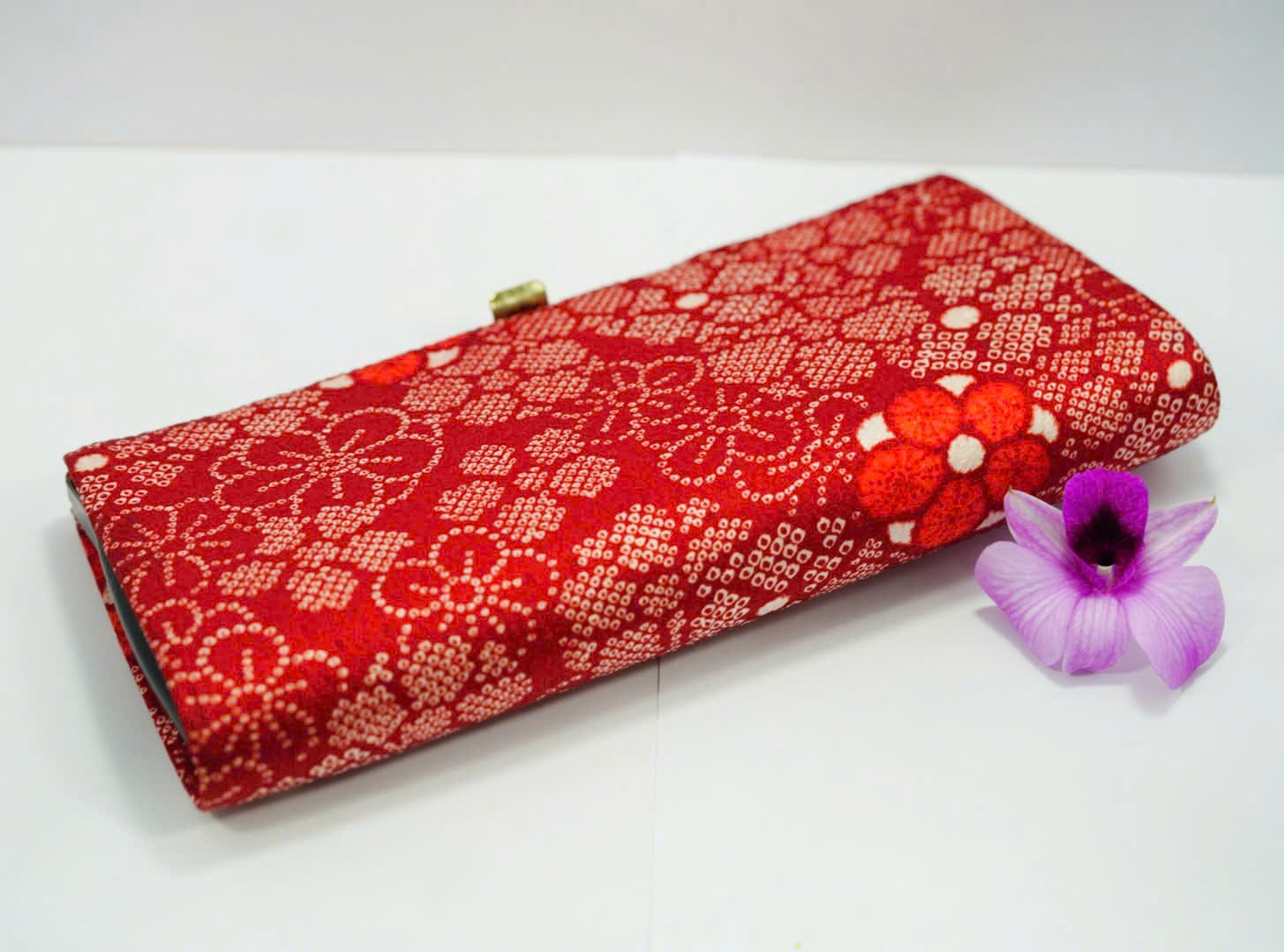 Mẫu ví dáng dài thanh lịch, phủ hoa văn truyền thống Nhật với màu đỏ nổi bật, mang ý nghĩa may mắn và thịnh vượng.