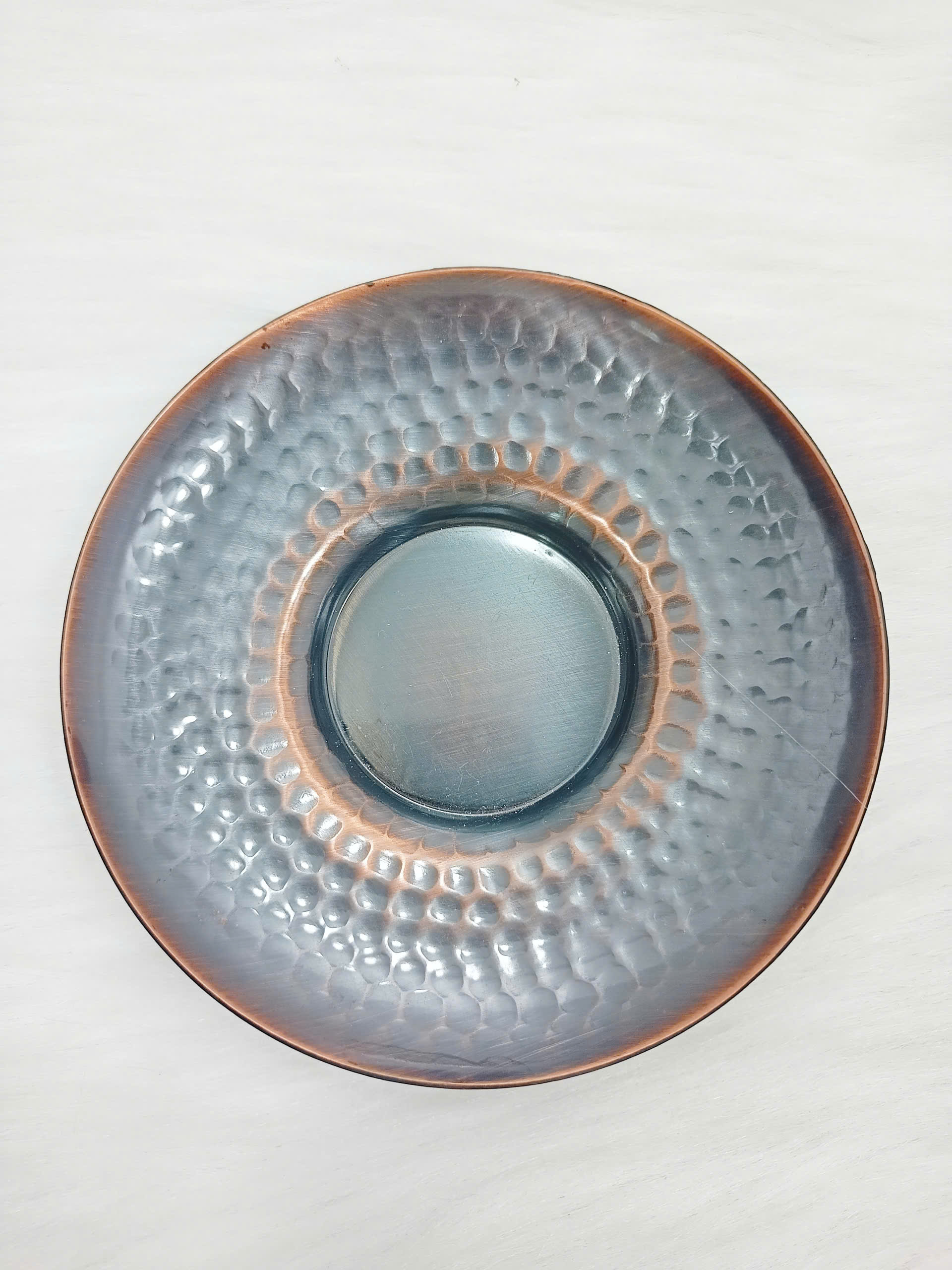 Thiết kế tinh xảo: Mỗi chiếc dĩa được chế tác thủ công bằng kỹ thuật gò búa truyền thống của Nhật, tạo nên bề mặt vân lồi lõm đều đặn – biểu tượng của sự tỉ mỉ và tay nghề cao.