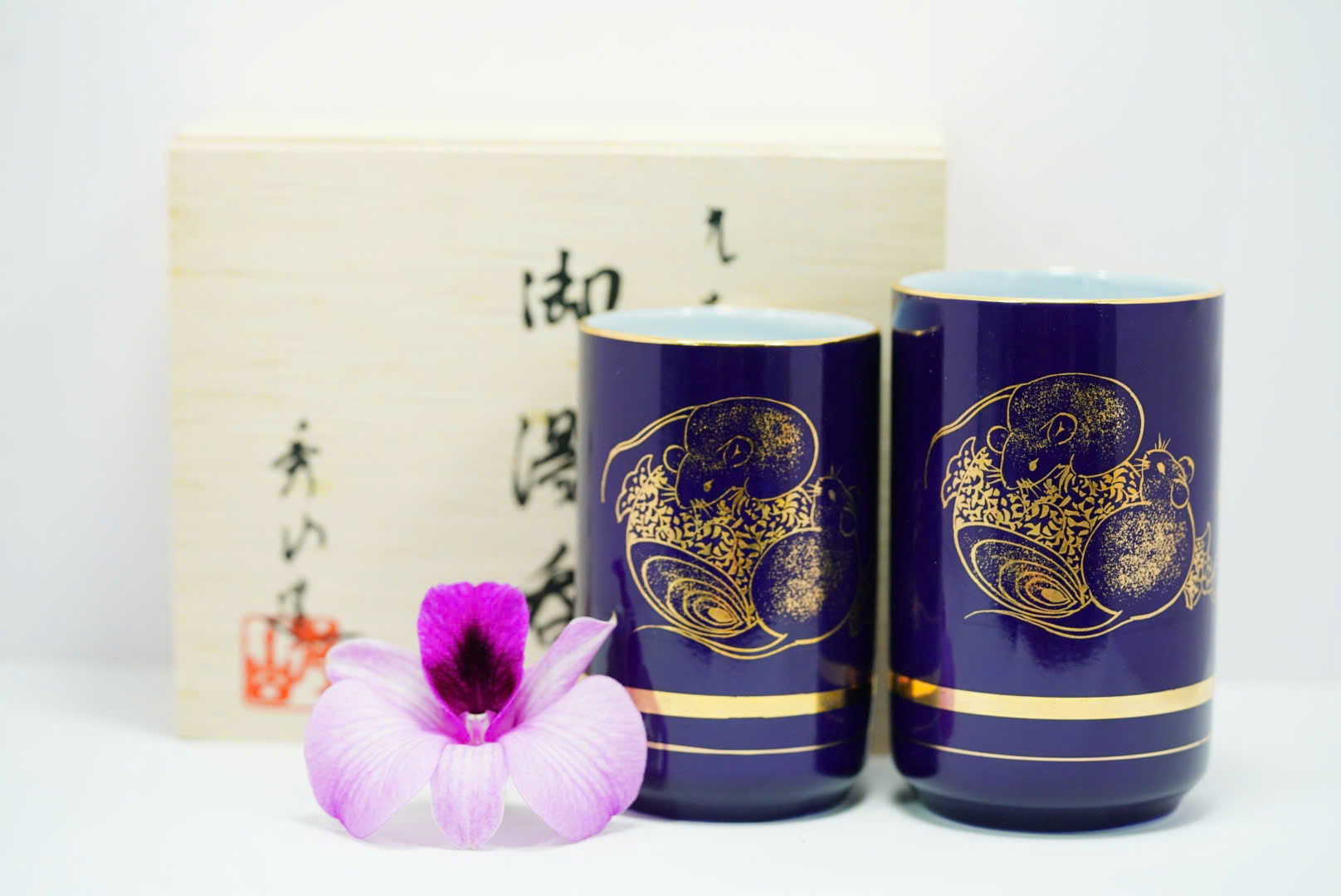 🏺 Bộ Ly Gốm Sứ Nhật BGS78 – Họa Tiết Chuột Vàng Phú Quý