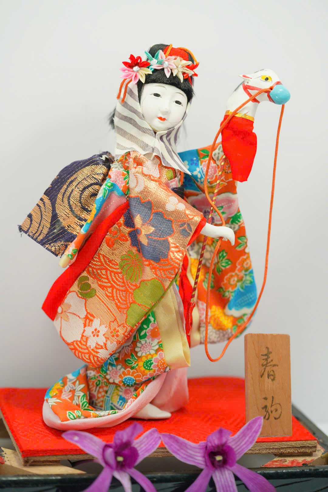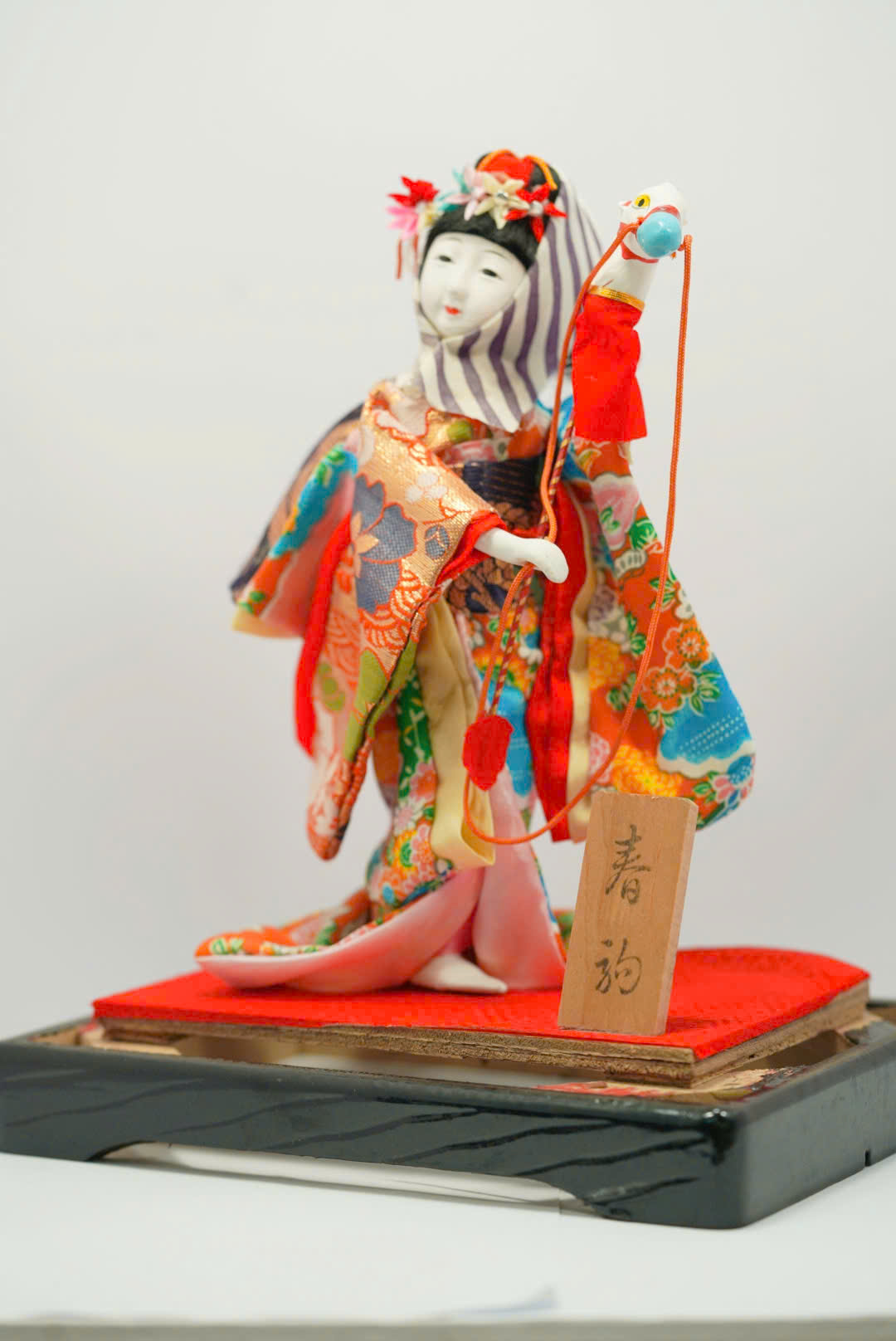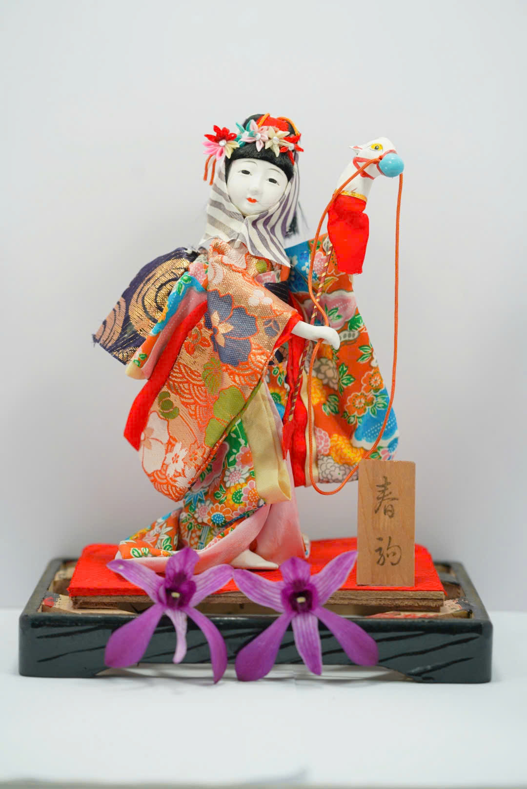 Tình trạng: Hàng si Nhật sưu tầm, còn nguyên vẹn, có dấu thời gian nhẹ ở đế và vải kimono – không ảnh hưởng thẩm mỹ.