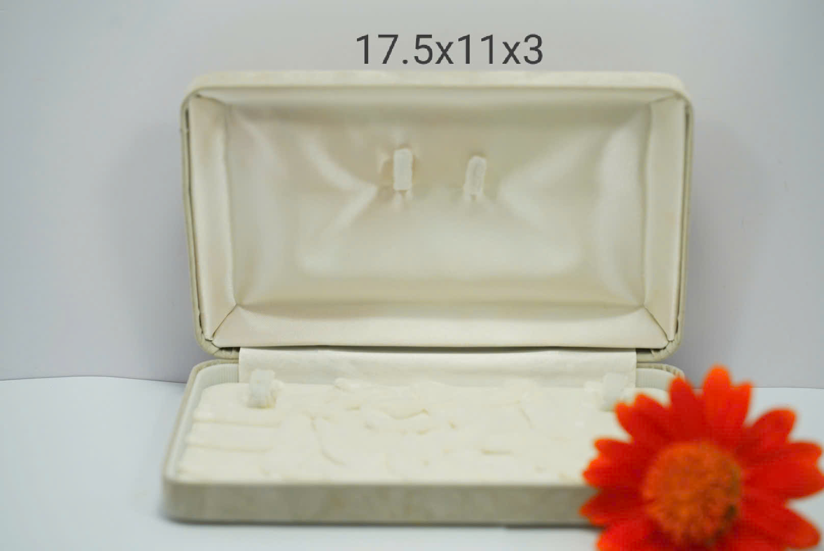 Hộp trắng ngà: 17.5 x 11 x 3 cm.