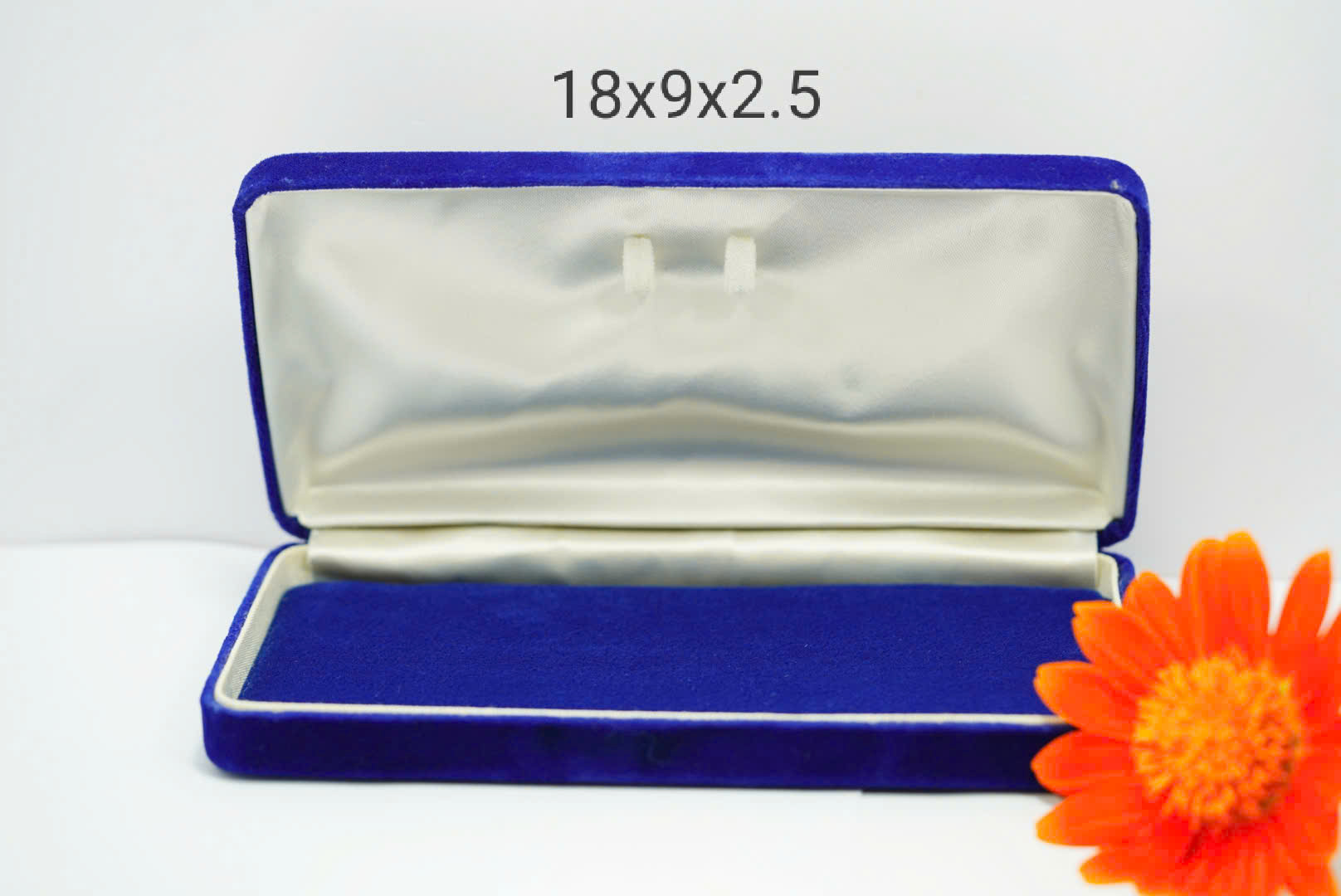 Hộp xanh tím 2: 18 x 9 x 2.5 cm.
