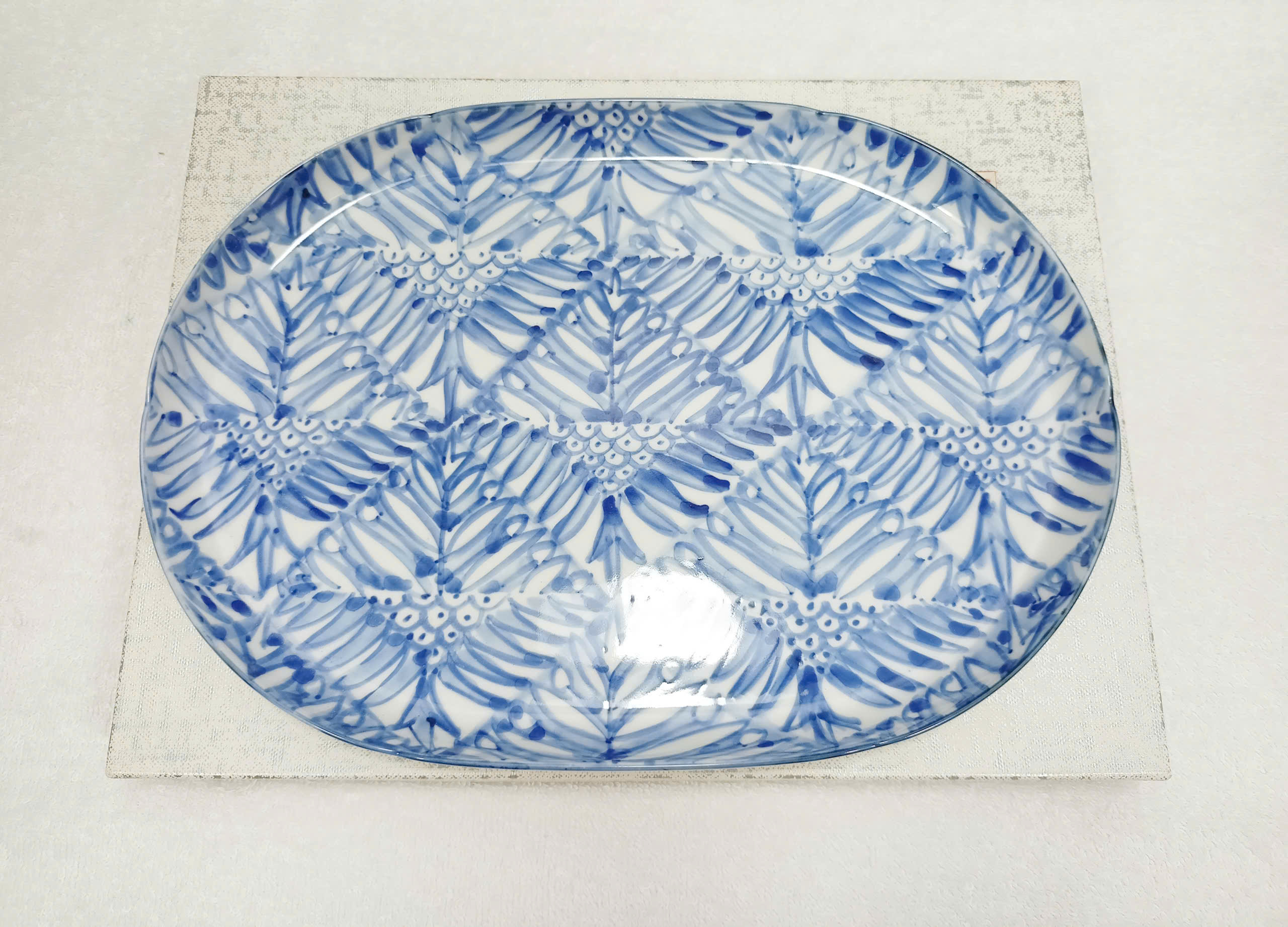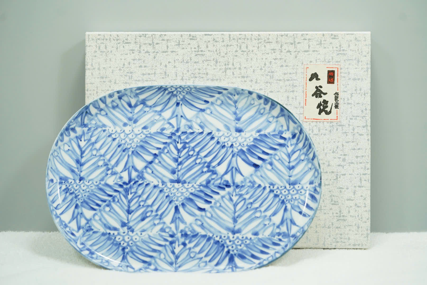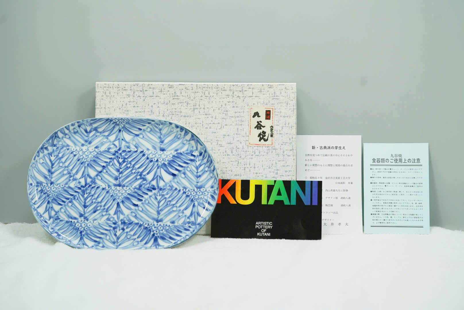 Đĩa gốm sứ si Nhật GS67 thuộc dòng K.u.t.a.n.i W.a.r.e – một trong những dòng gốm nghệ thuật nổi tiếng của Nhật Bản, được vẽ thủ công tinh tế với họa tiết hoa lá màu xanh cobalt đặc trưng.