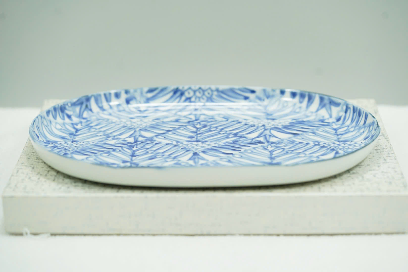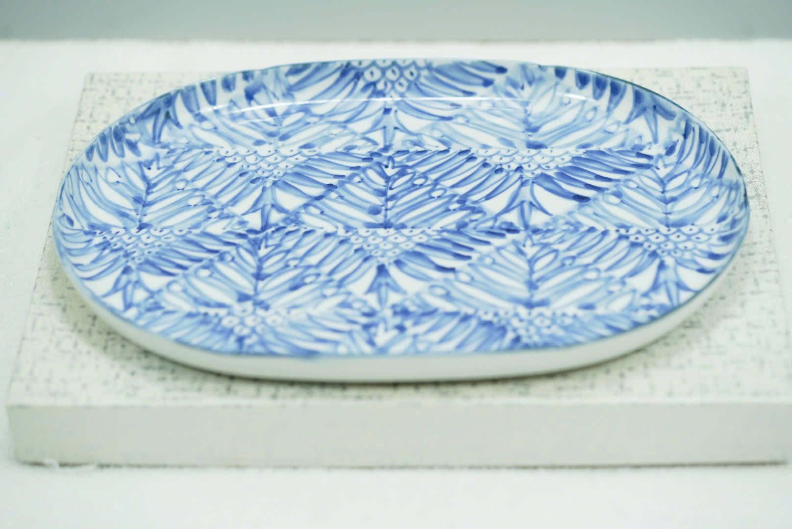 Sản phẩm có hình oval thanh nhã, mang phong cách tối giản mà tinh tế, kết hợp với nước men bóng trong suốt, giúp họa tiết thêm sống động và sang trọng. Bề mặt đĩa được hoàn thiện tỉ mỉ, chống bám bẩn, dễ vệ sinh.