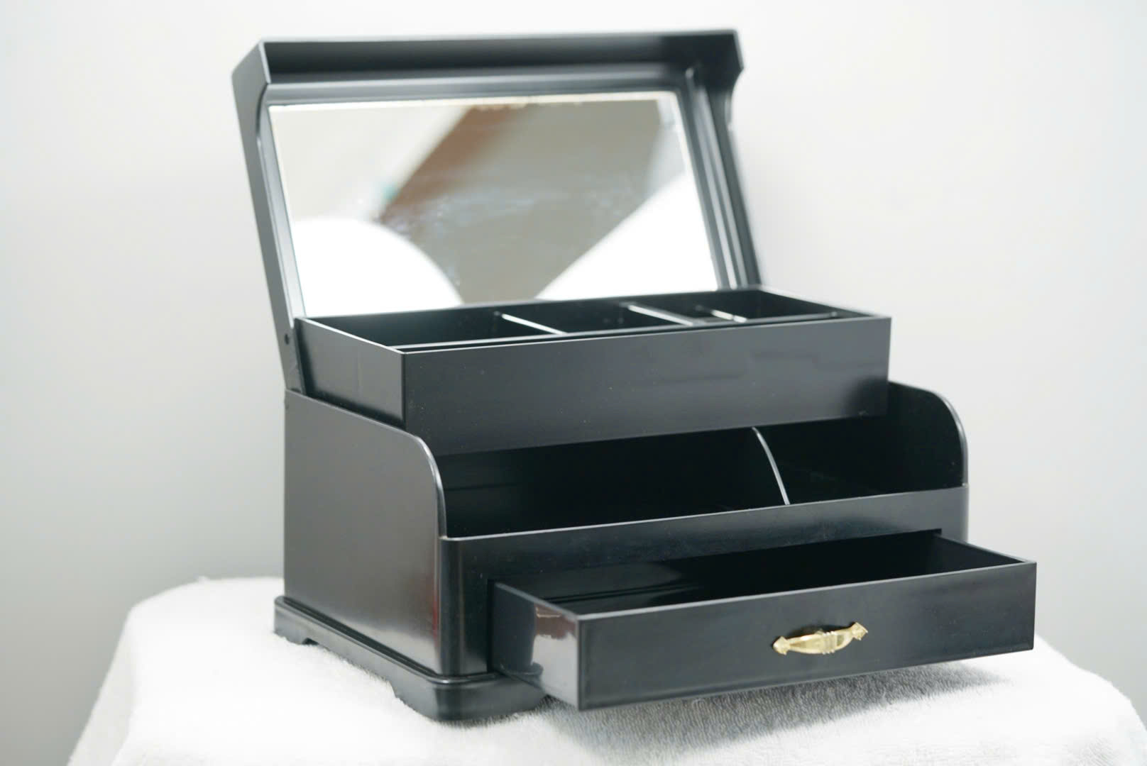 Thiết kế có gương soi lớn bên trong nắp hộp, cực kỳ tiện dụng cho việc trang điểm, đeo trang sức.