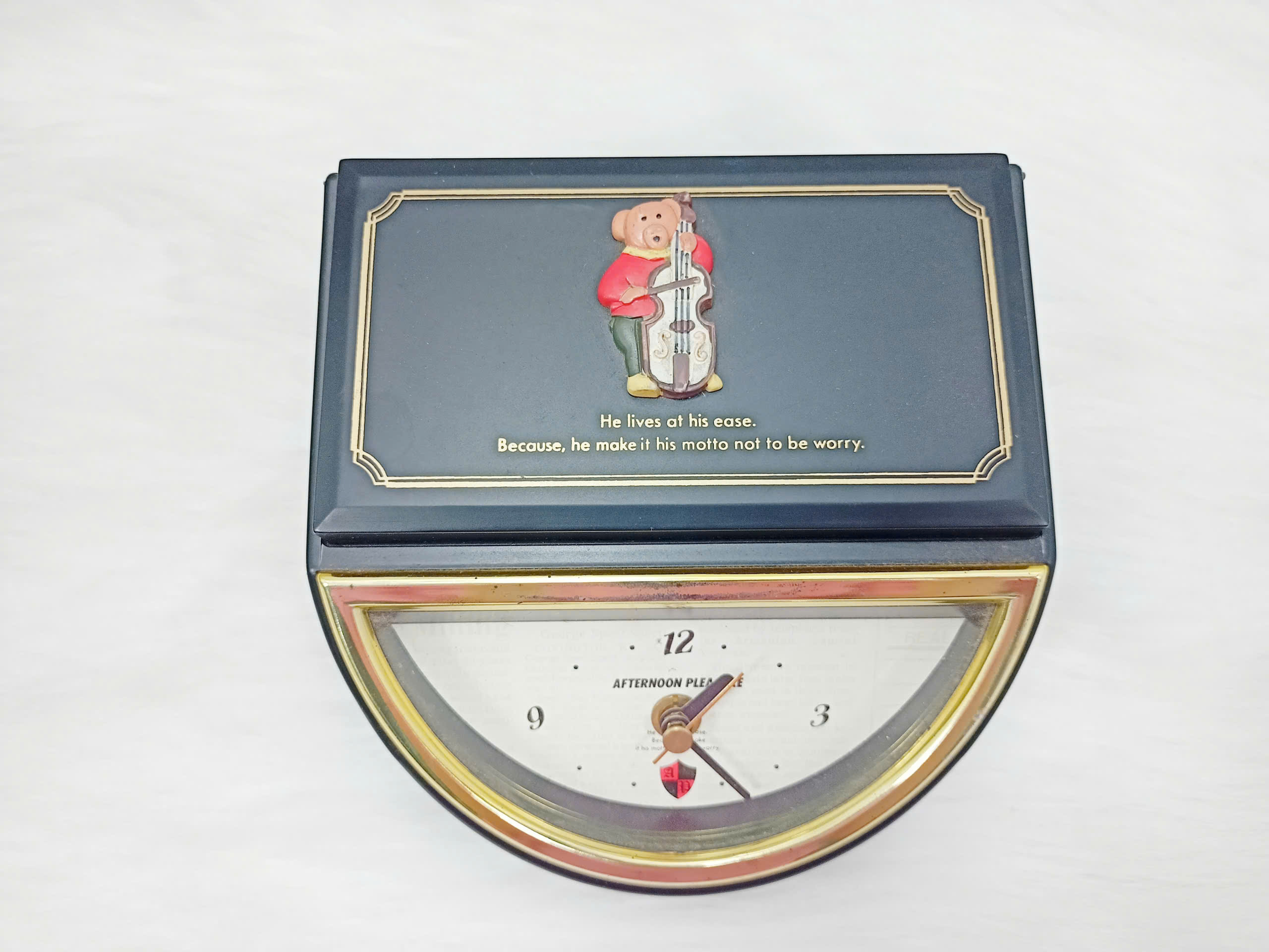 Phần trên hộp in hình chú gấu dễ thương chơi đàn, kèm câu chữ trang trí bằng tiếng Anh