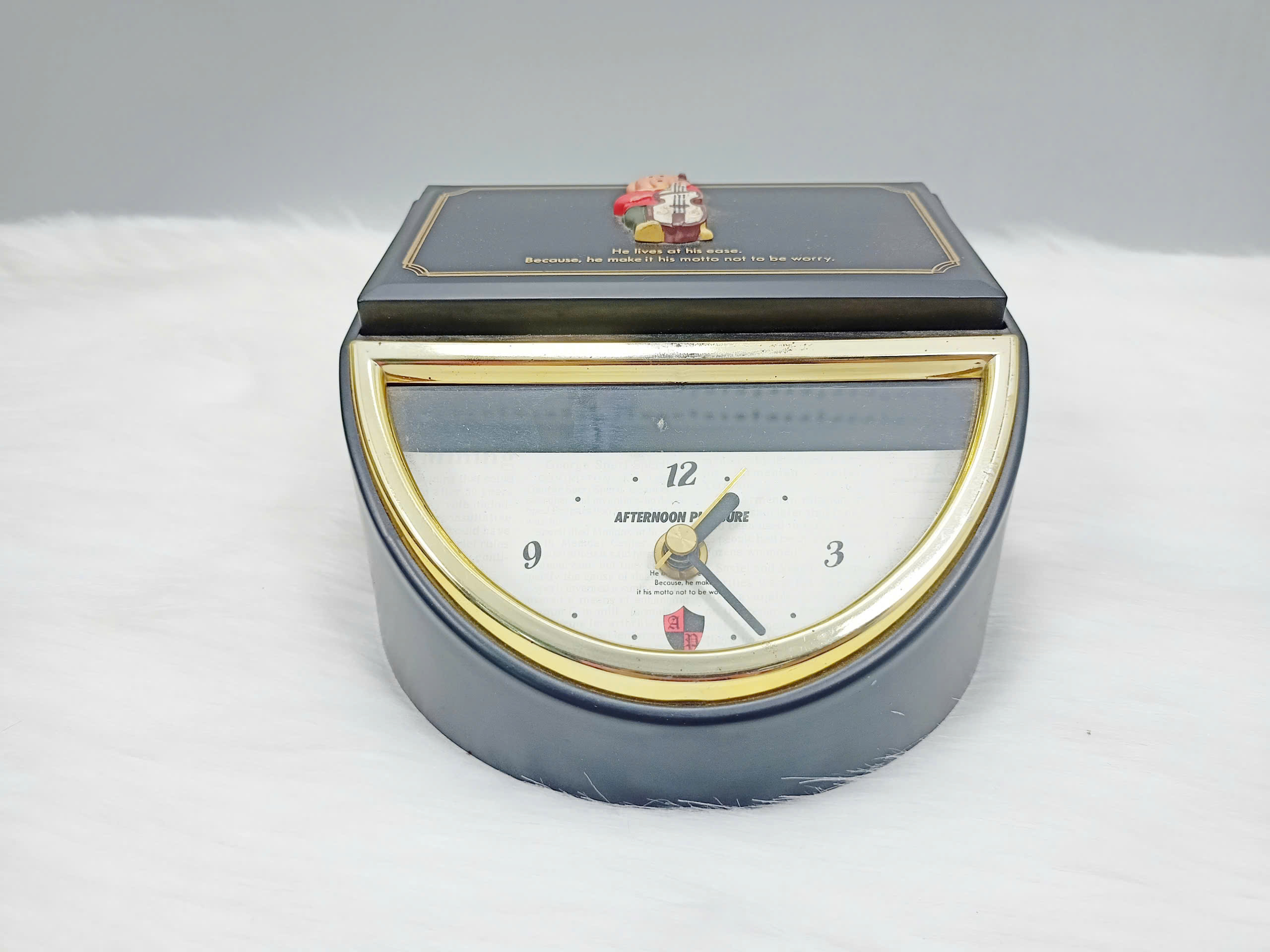 Phía dưới là đồng hồ Quartz nửa hình tròn, viền mạ vàng nổi bật