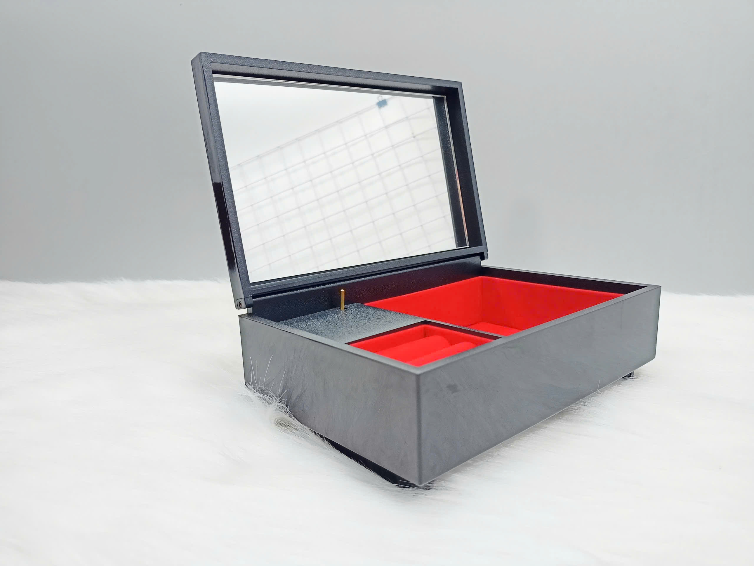 Nắp hộp mở ra có gương soi toàn mặt trong, tiện dụng khi trang điểm và thử trang sức