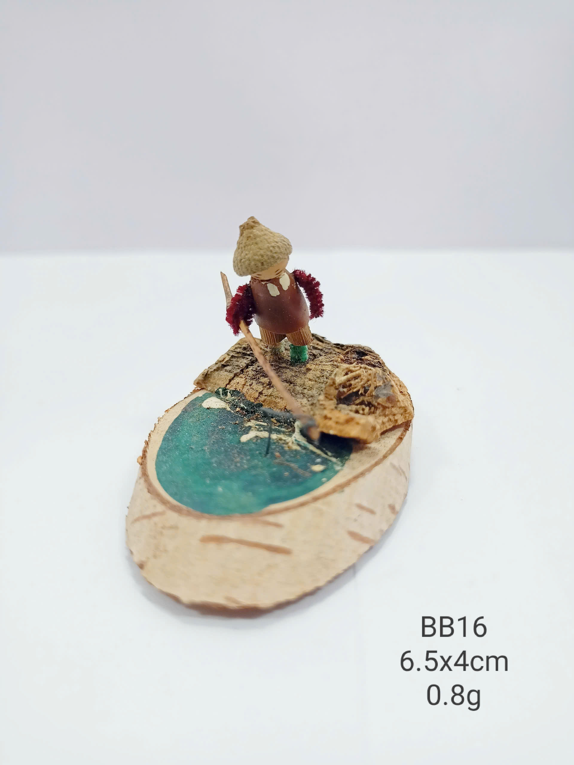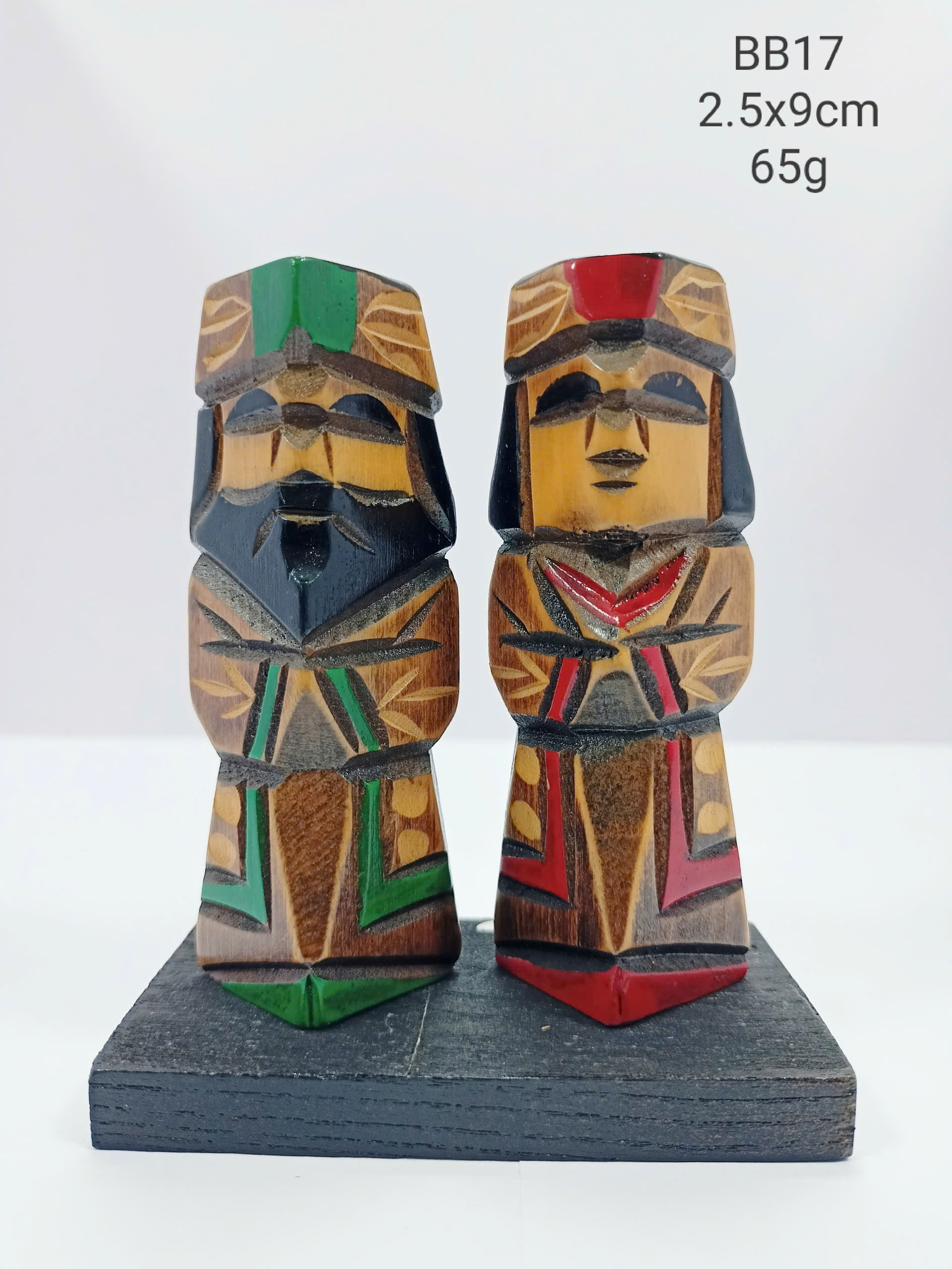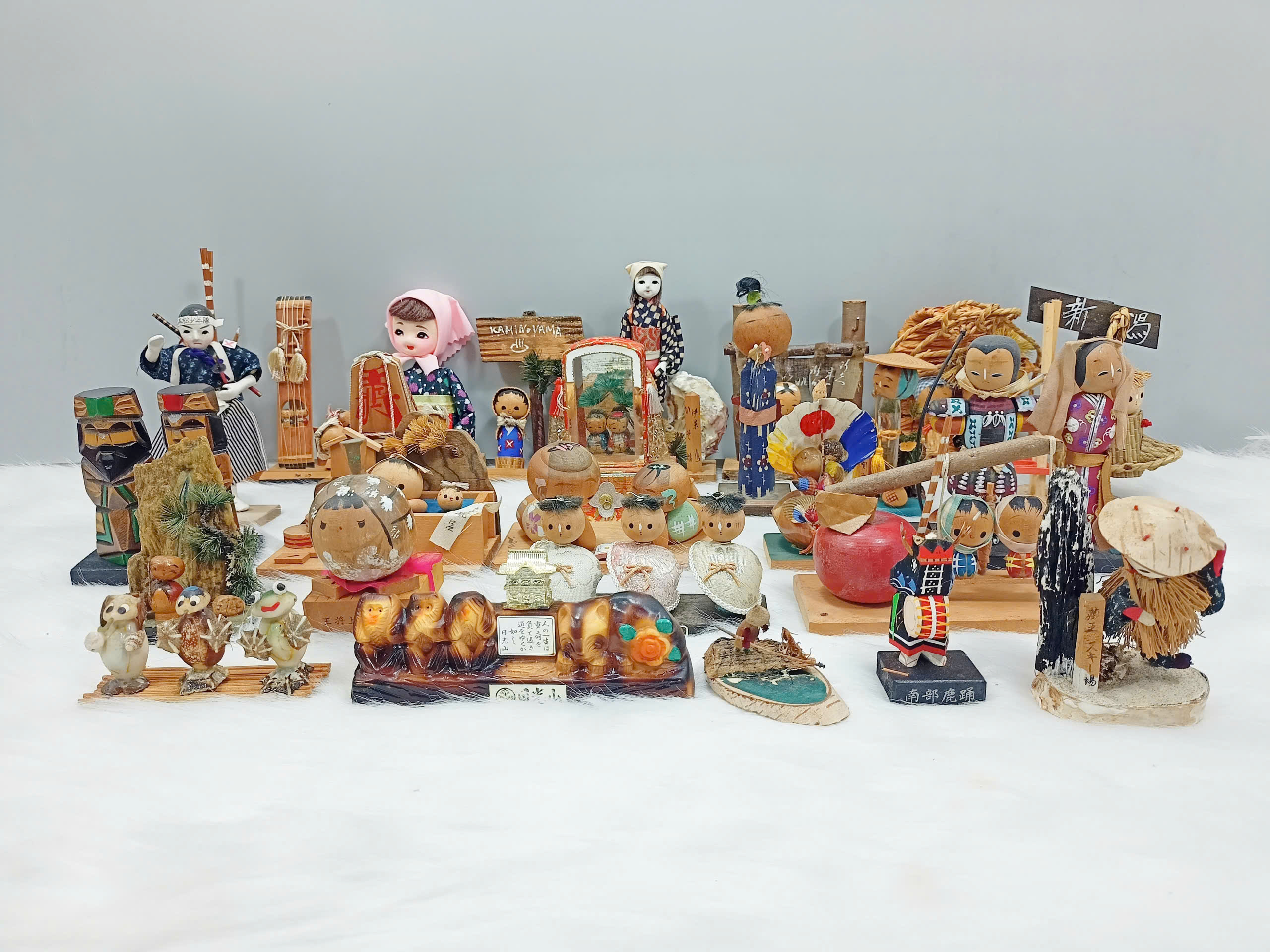 Các tượng nhỏ bằng gỗ, tre, gốm mô phỏng nhân vật dân gian, động vật đáng yêu.