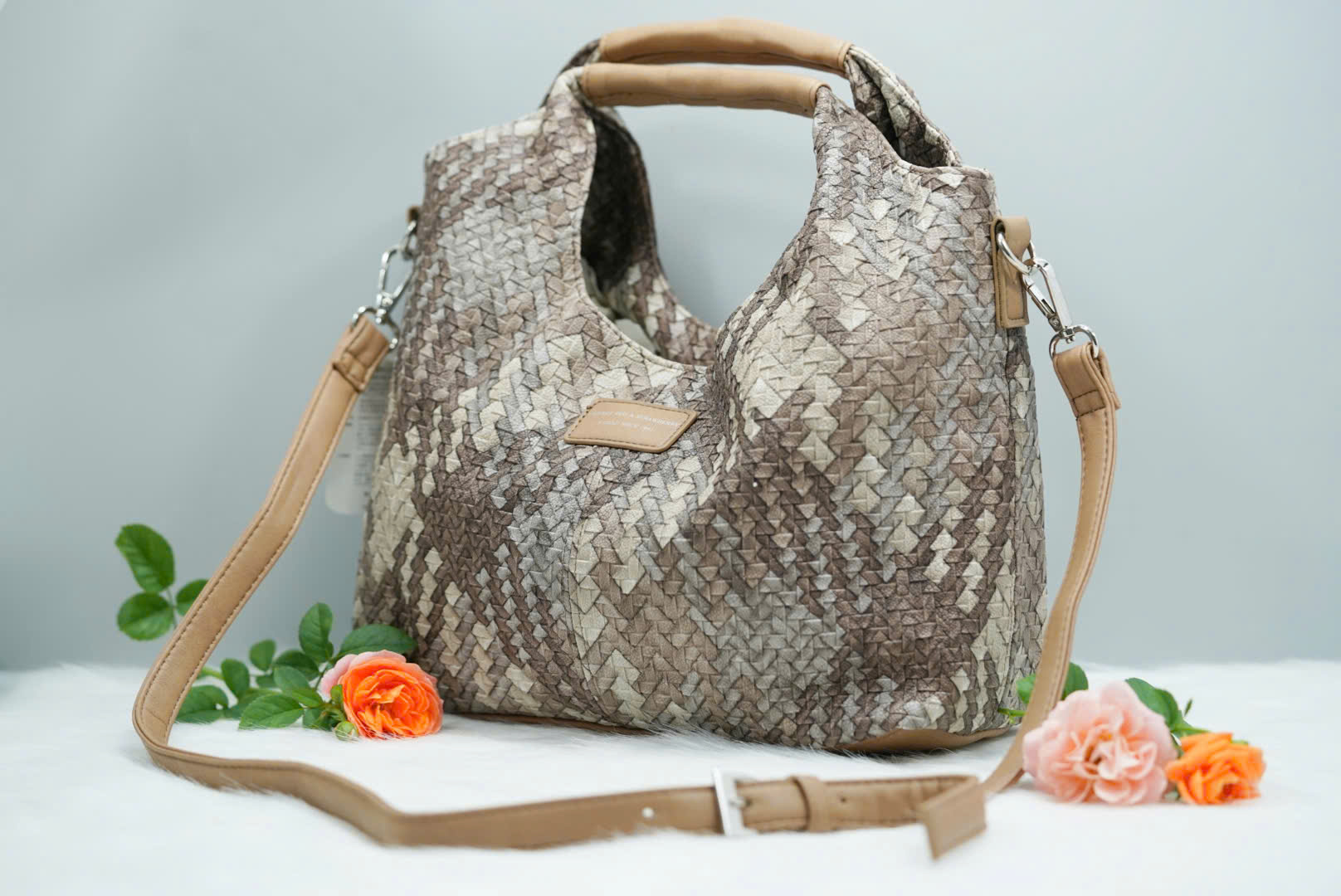Thiết kế: Form túi rộng rãi, quai xách chắc chắn, có dây đeo tháo rời tiện lợi