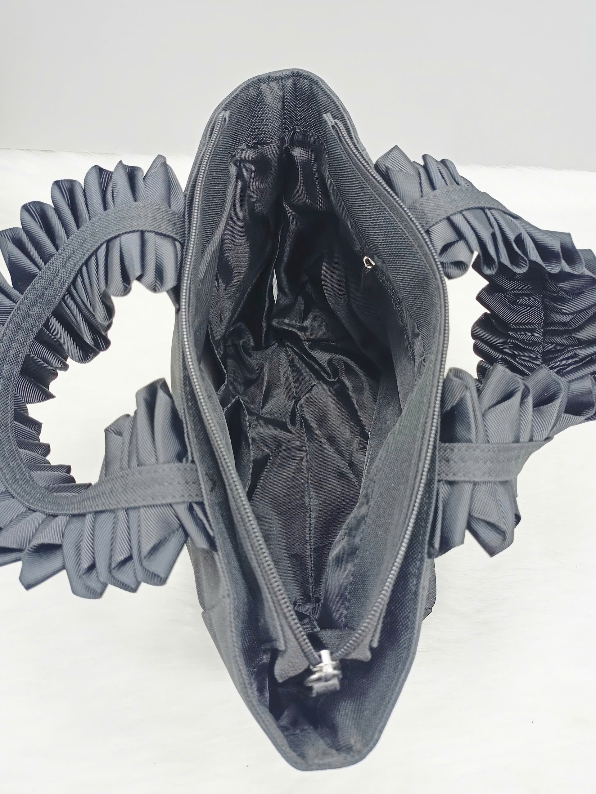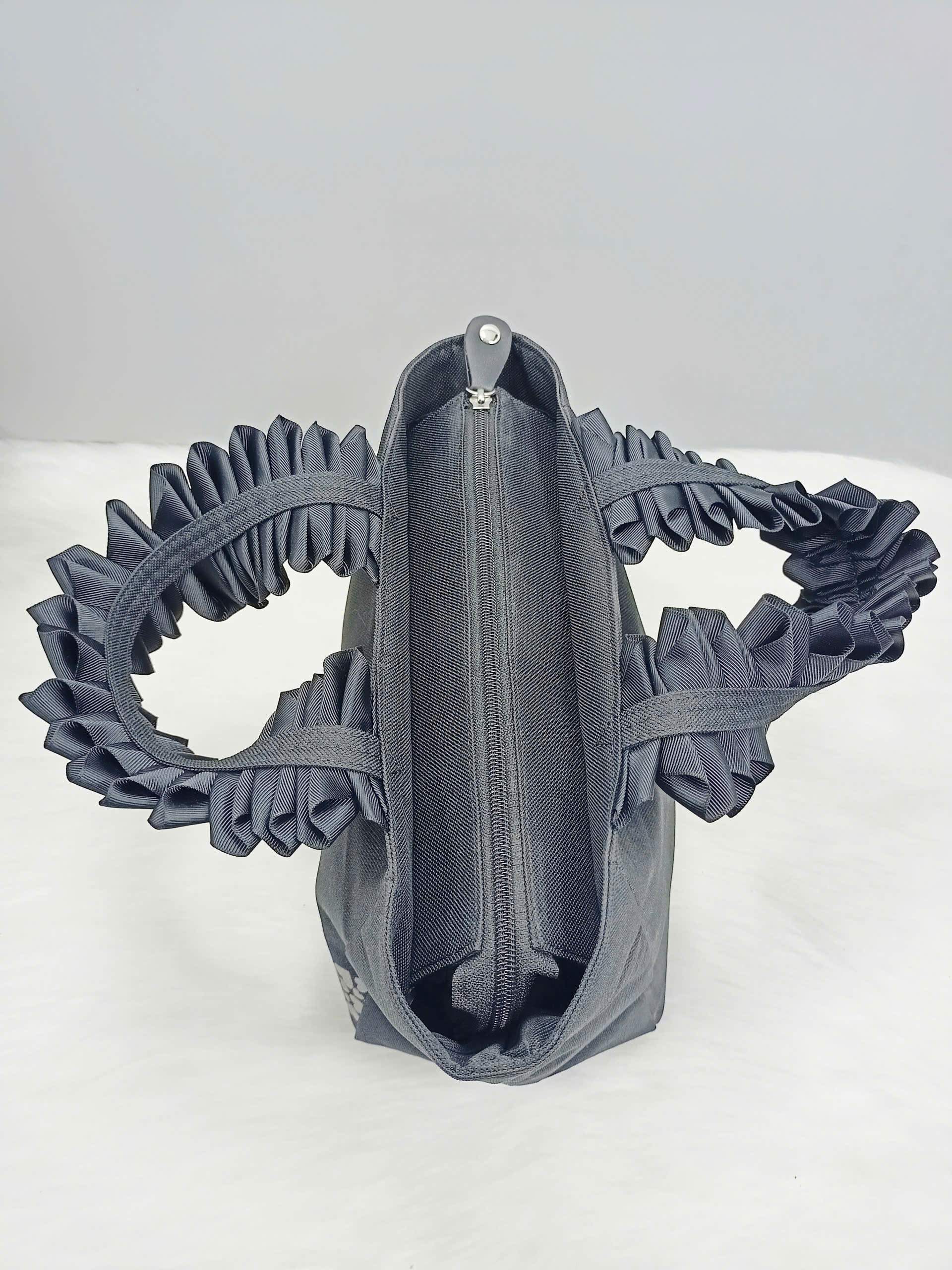 Điểm nhấn của túi nằm ở tay cầm bèo nhún bằng vải satin cao cấp, được thiết kế tỉ mỉ, tạo nên nét nữ tính và mềm mại, đồng thời mang lại cảm giác cầm nắm thoải mái.