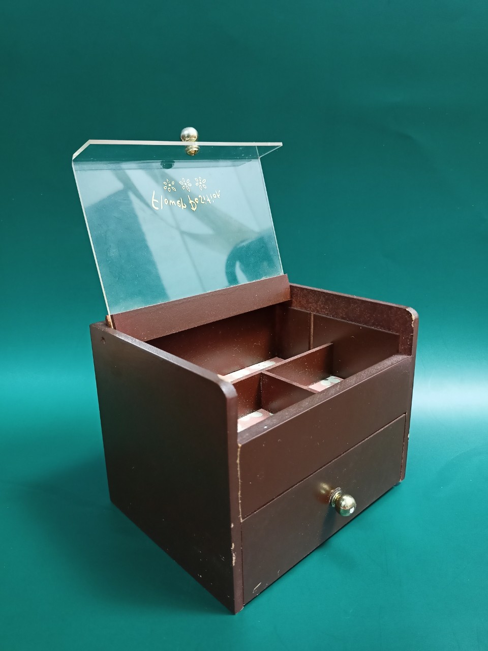 Hộp trang sức Nhật Bản – Gỗ nâu, nắp kính trong suốt