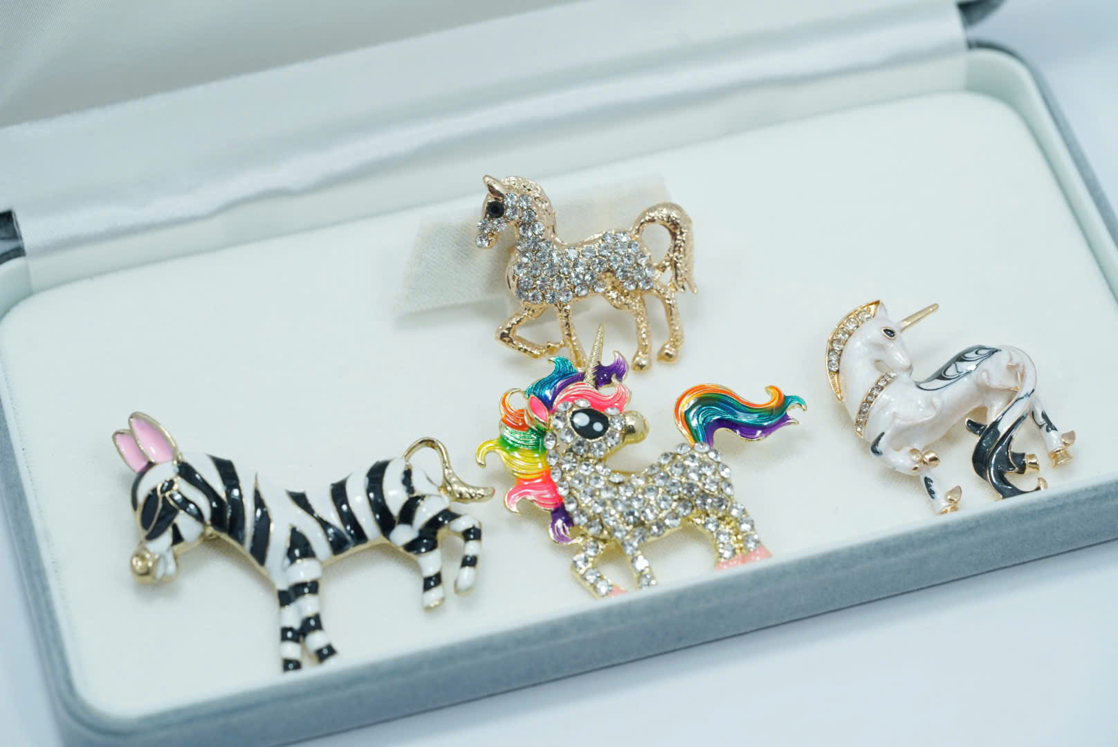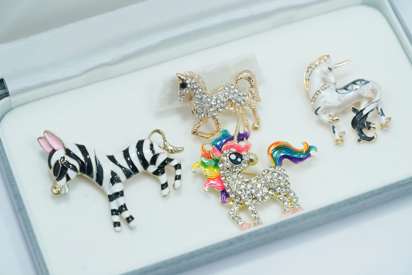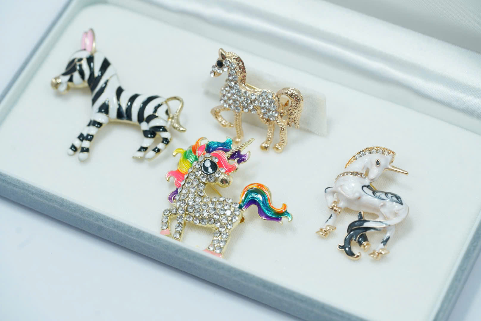 Bộ sưu tập trâm cài lấy cảm hứng từ các loài ngựa và kỳ lân – biểu tượng của sự mạnh mẽ, mộng mơ và tự do. Thiết kế đáng yêu, chất liệu cao cấp với đá pha lê và men màu rực rỡ, phù hợp với mọi độ tuổi và phong cách.